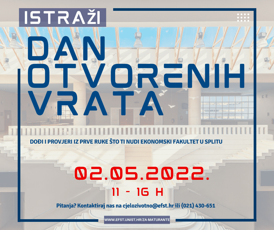 Sve detalje o Danu otvorenih vrata možete pronaći na web stranicama Ekonomskom fakulteta u Splitu ili na njihovim društvenim mrežama.