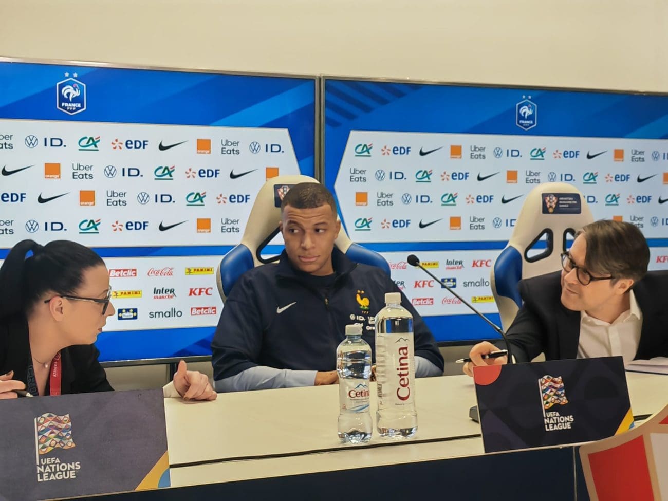 Nogometaši Hrvatske i Francuske u četvrtak će na Poljudu odigrati prvu utakmicu četvrtfinala Lige nacija. Reprezentativci Francuske danas su stigli u Split, a u tijeku je konferencija za medije na kojoj će sudjelovati trener Didier Deschamps i Kyllian Mbappe.