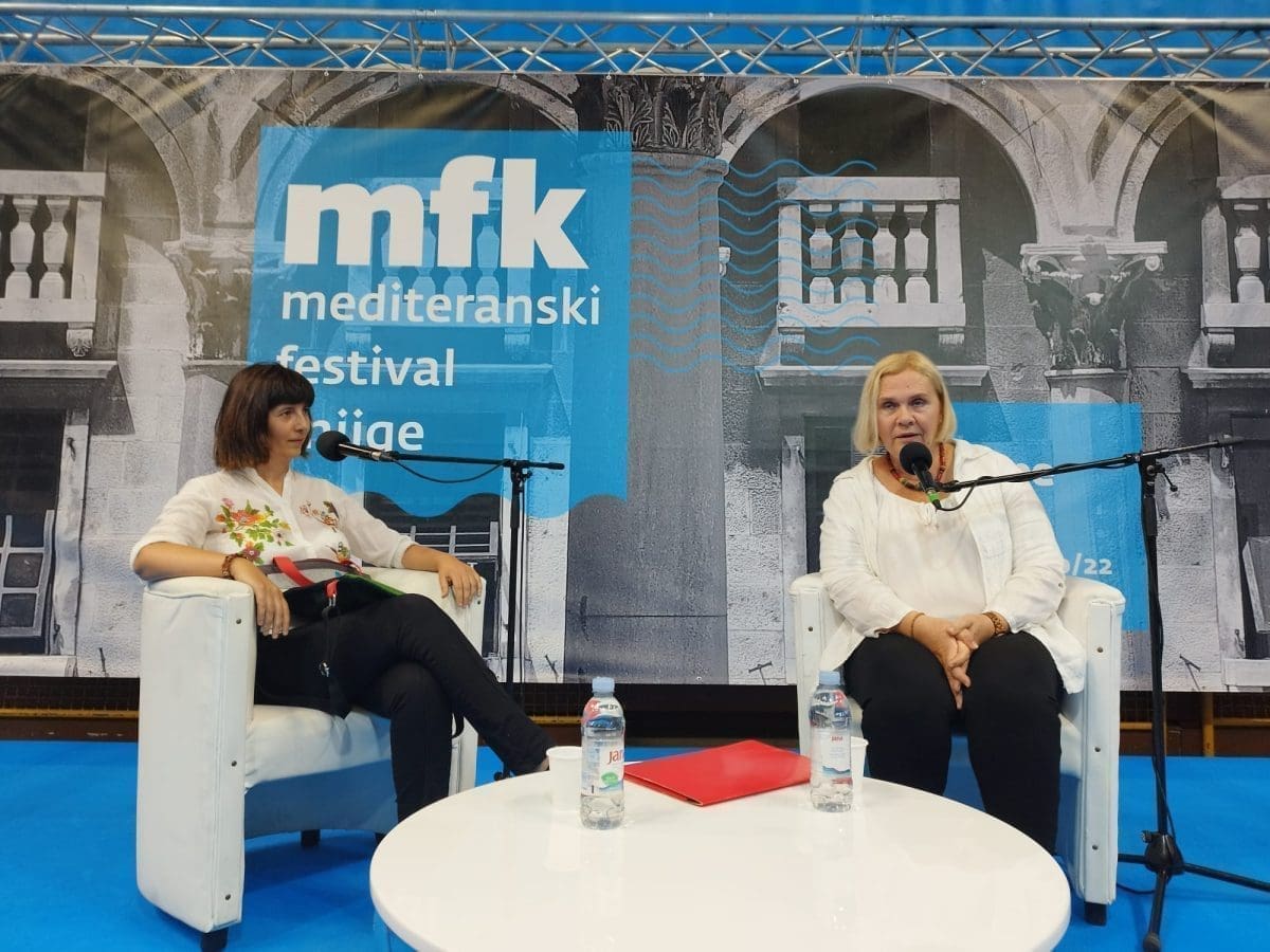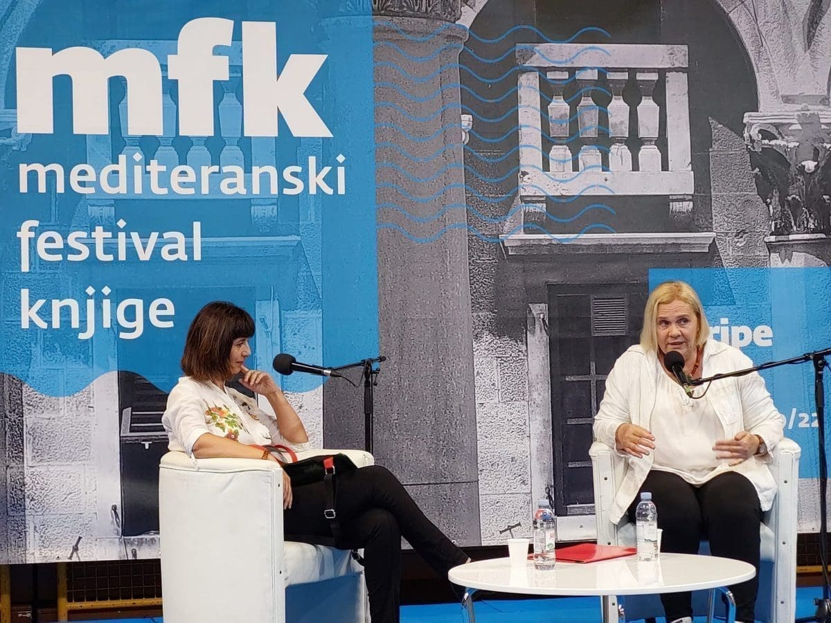 Ako je nedjelja, i ako je 14 sati, sasvim je logično da i Mediteranski festival knjige ima program "Kod nas u 2", u kojem je splitska blogerica i književnica Slobodanka Boba Đuderija — uvijek rado viđena gošća na MFK — ugosti kolegicu po peru i humoru Dadu Batinić. Gošća je također počela kao blogerica, viralnu slavu stekla je svojim Facebook statusima o turistima koje sreće u Makarskoj, a potom od priča s bloga Bapske priče složila zbirku sa zgodama o vlastitoj babi iz biokovskog sela Makra. Nakon što je neko vrijeme pisala takve priče i za Index, danas je dopisnica Slobodne Dalmacije iz Makarske, najpoznatija po intervjuima s ljudima koji ispunjavaju njezine kriterije zanimljivosti.