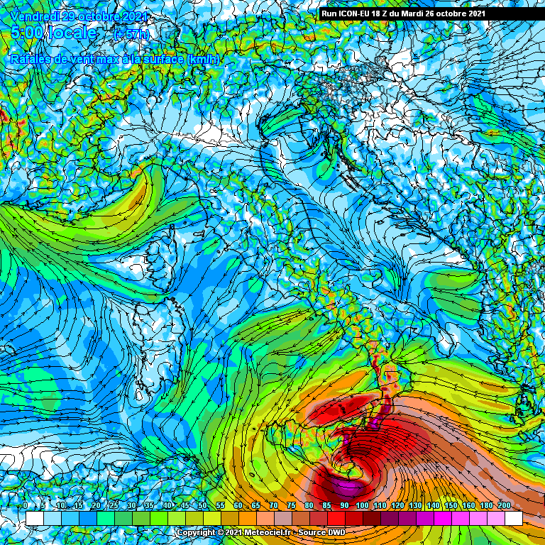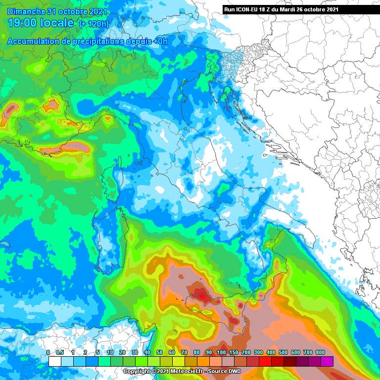 Bez obzira na to, medicane već danima stacionira na krajnjem jugu Italije ili na moru južnije od Italije. Dijelovi Sicilije i Calabrije primili su ekstremne količine oborina protekla dva i pol dana. Primjerice, meteorološka postaja Cassari u pokrajini Vibo Valentia, zabilježila je najveću kumulativnu količinu oborina u Kalabriji. Za manje od 48 sati (od 17:00 24. do 10:30 26. listopada) izmjereno je nevjerojatnih 451,6 mm. Slijede Chiaravalle Centrale (358,2 mm), Mongiana (350,4 mm), Antonimina Canolo Nuovo (314,4 mm), Serra San Bruno (259,2 mm), Fabrizia (257,8 mm), Santa Caterina dello Ionio (255,4 mm), Palermiti (241,2 mm ).