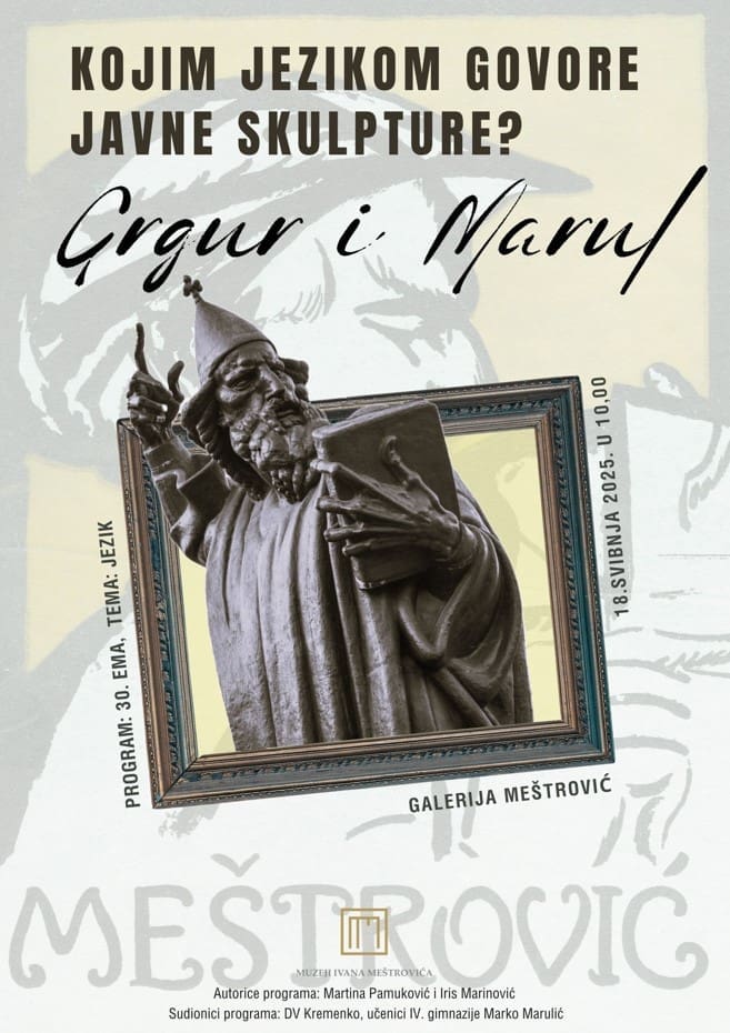 Program započinje u 10 sati izložbom "Kojim jezikom govore javne skulpture? Grgur i Marul?" koju su osmislile kustosica-pripravnica Martina Pamuković i viša kustosica Iris Marinović. Izložba je dio 30. Edukativne muzejske akcije i posvećena je dvjema ikoničnim skulpturama Ivana Meštrovića – Marku Maruliću i Grguru Ninskom. Dječji radovi, inspirirani ovim velikanima hrvatskog jezika, nastali su nakon edukativnog stripa i izrađeni u Atelijeru za glinu, te će biti predstavljeni javnosti.