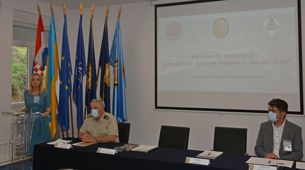 Prorektor Sveučilišta u Zagrebu, prof. dr. sc. Tonći Lazibat govori o Hrvatskom klasifikacijskom okviru i njegovoj ulozi u sustavu visokog obrazovanja u RH. Osim navedenih tema, na skupu će se raspravljati o združenim studijima, razvoju vojnih standarda zanimanja, analizi provedbe studijskih porgrama za potrebe OS RH u akademskoj godini 2020/2021. O združenim studijima govori zamjenica ravnatelja AZVO dr. sc. Vesna Dodiković-Jurković. Posebnu pozornost su izazvali visoko pozicionirani predstavnici oružanih snaga Ukrajine, vojni konzul pri RH i generali oružanih snaga.