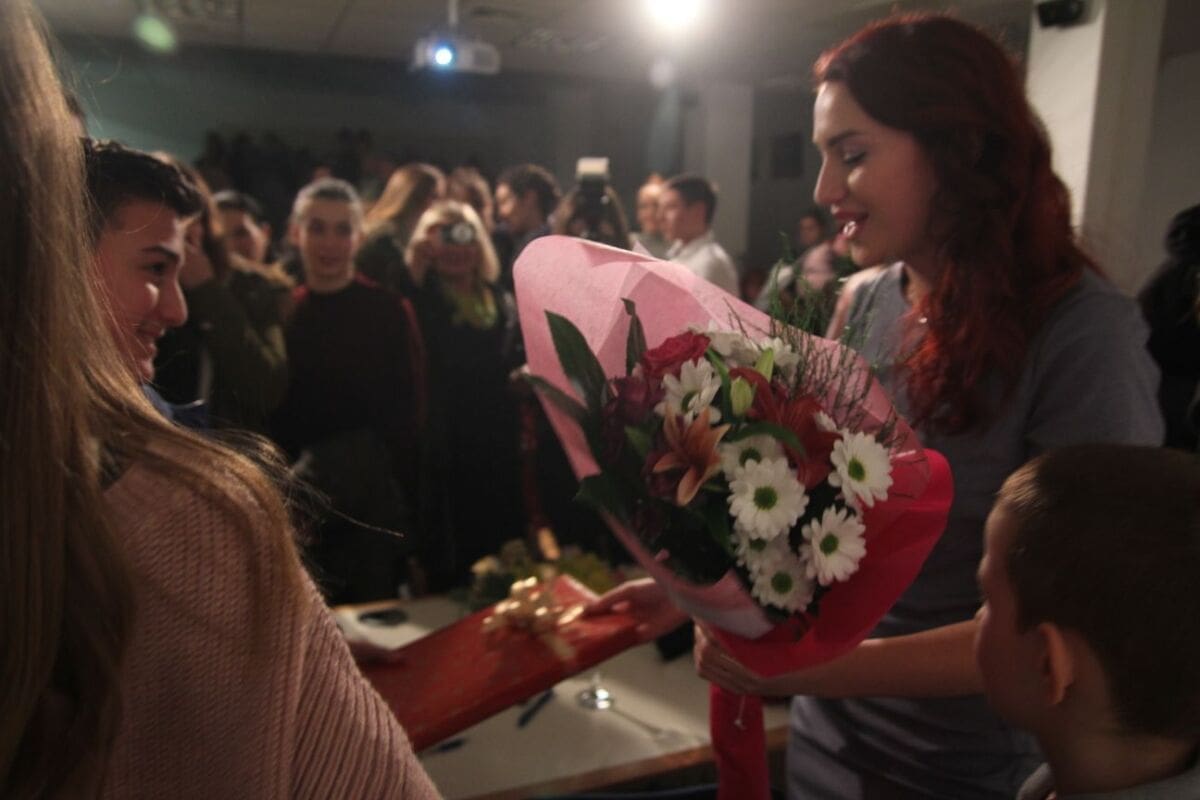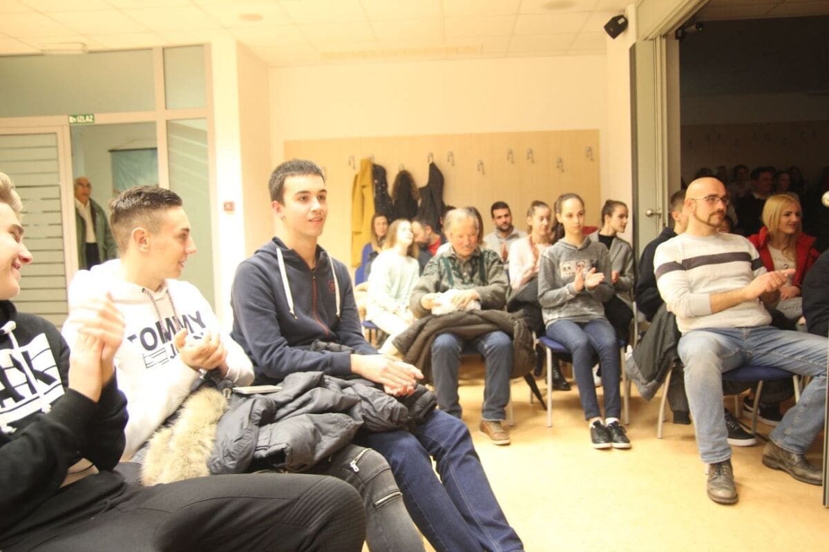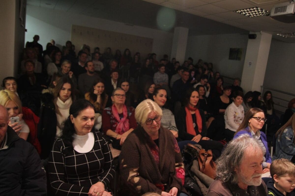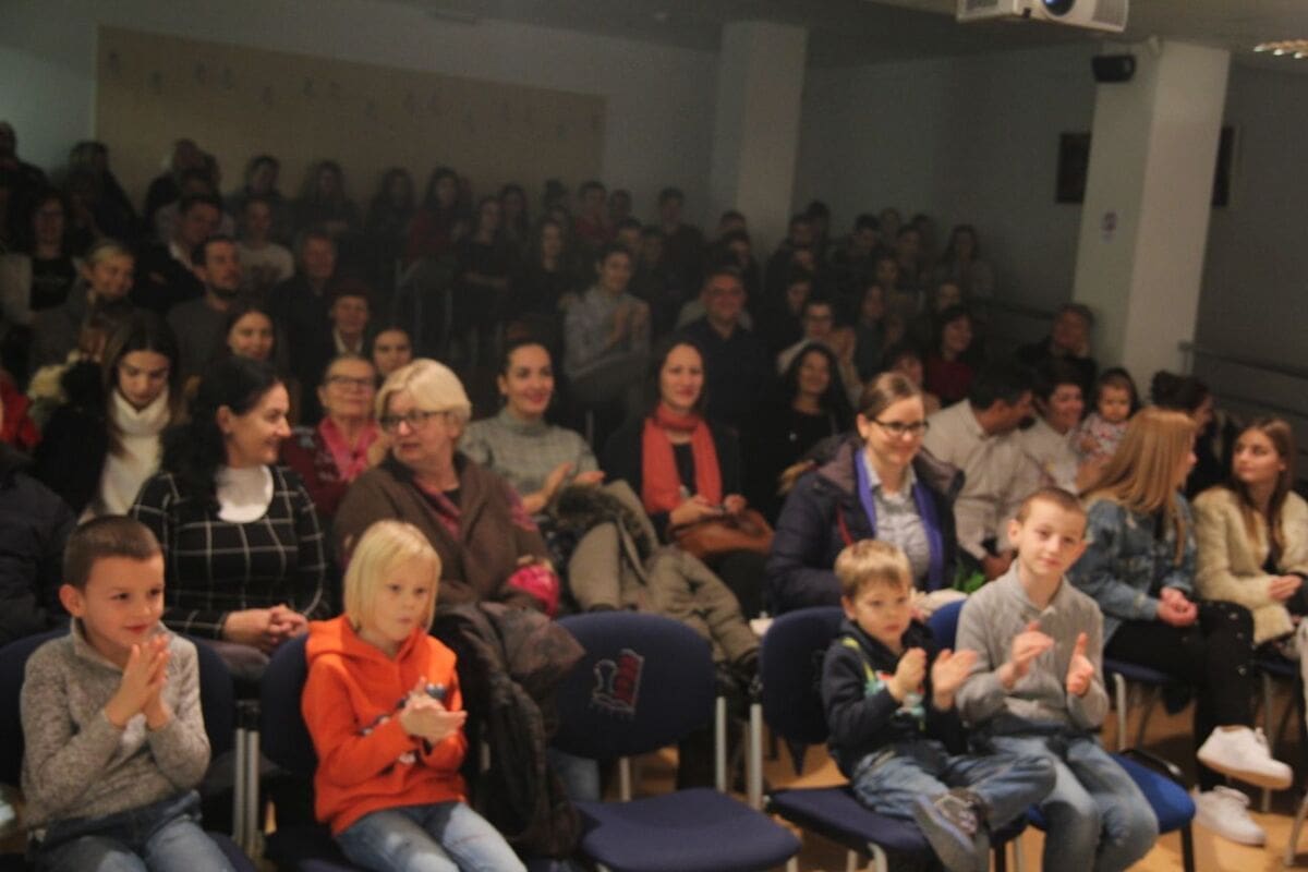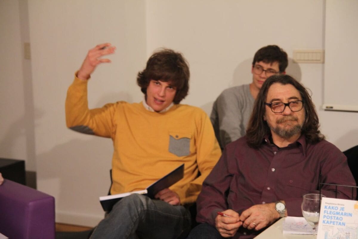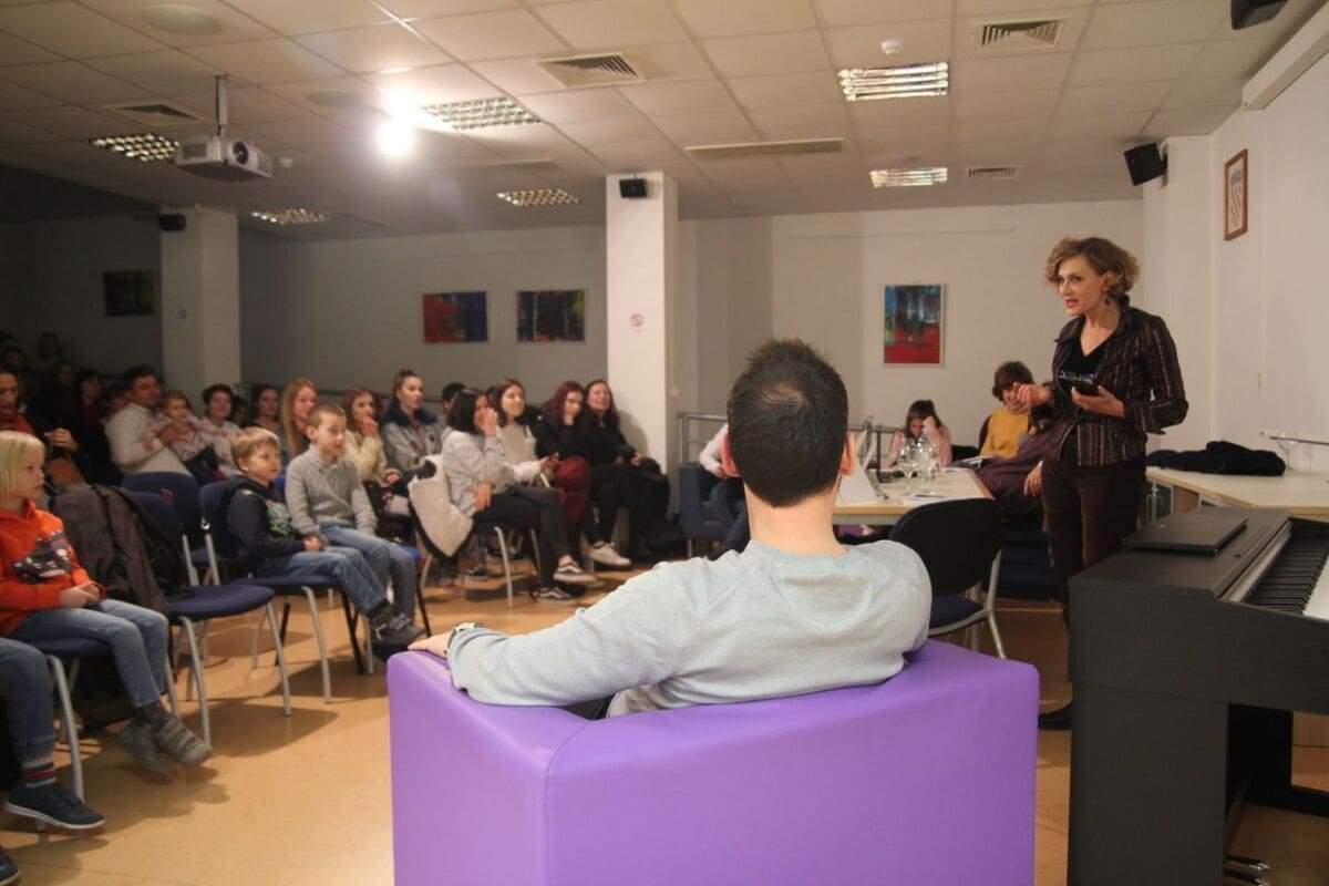 Teško da je ikad dvorana GKMM-a bila ispunjenija nego na ovoj promociji. Naime, mi koji smo malo kasnili jedva smo našli mjesto za sjesti, a bilo je onih koji su pratili predstavljanje ove izvrsne knjige s nogu. Promocija, pomalo drugačija od uobičajene, započela je s nekoliko uvodnih riječi moderatorice Grozdane Ribičić, voditeljice dječjeg odjela GKMM-a, i najave glazbenih izvedbi na gitari i klaviru od strane Magdaleninog učenika Bruna Jakobljevića i kolege profesora glazbene kulture Ivana Bošnjaka. Ulaskom Magdalene u dvoranu prolomio se ogroman pljesak kolega novinara, profesora, obitelji, prijatelja i razreda kojima predaje, a tu su od školaraca bili učenici razreda 1. D, 2. D, 2. F i 3. A.