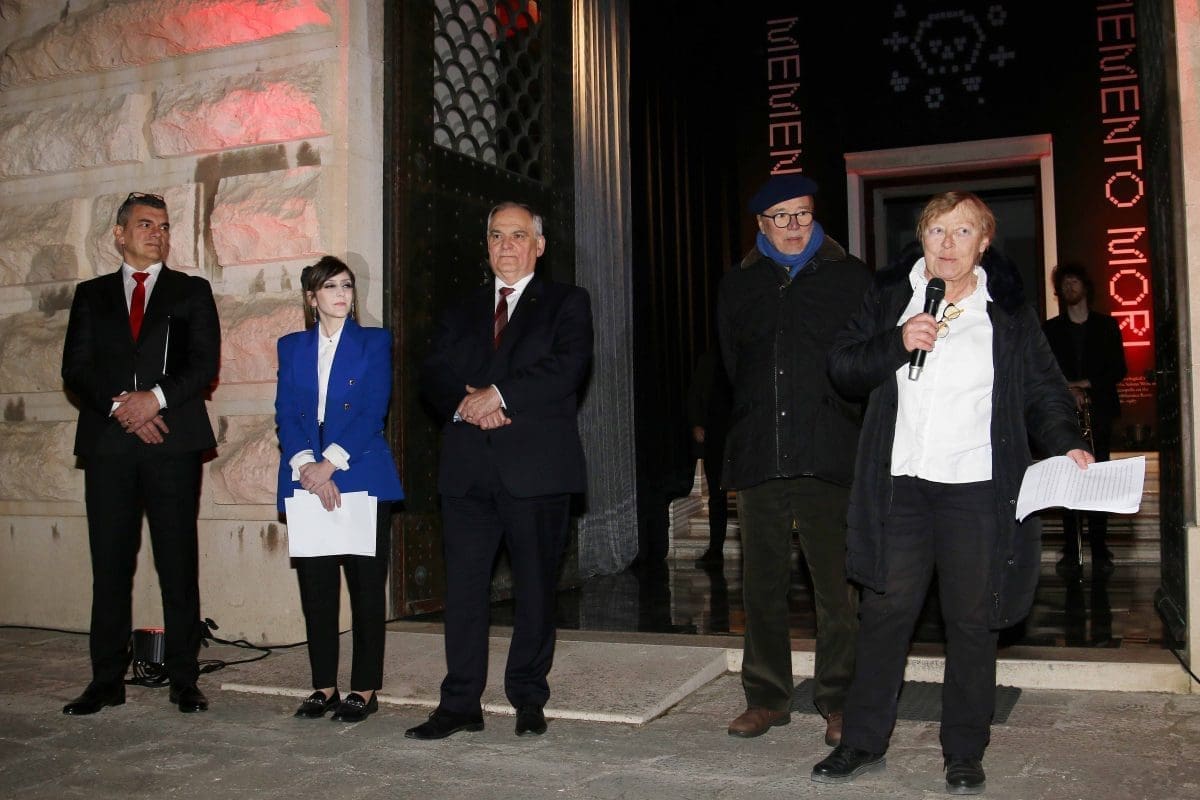 Tri godine, rečeno je ovom prilikom, pripremala se izložba Memento mori (lat: Sjeti se smrt(nost)i). U ime autora izložbe, kustosica Vesna Matić, upoznala je posjetitelje s izložbom koja počinje na samom ulazu. Datum nije slučajno odabran. Na februarske ide održavale su se rimske pogrebne svečanosti kojima su Salonitanci odavali počast svojim mrtvima. Baš kao i tada, sarkofazi i spomenici poredani sve do glavnog ulaza ukrašeni su lovorovim vijencima i girlandama, a cijelim prostorom dominirala je crvena boja i svjetlosni efekti koja je u antičko doba, bila boja kojom se odavala počast smrti. Posjetitelji dolaskom na izložbu odaju počast drevnim Salonitancima, ali time i slave život. Ova ključna tema šalje poruku da svi zajedno osvijestimo važnost sadašnjeg trenutka, stoji u priopćenju za medije.