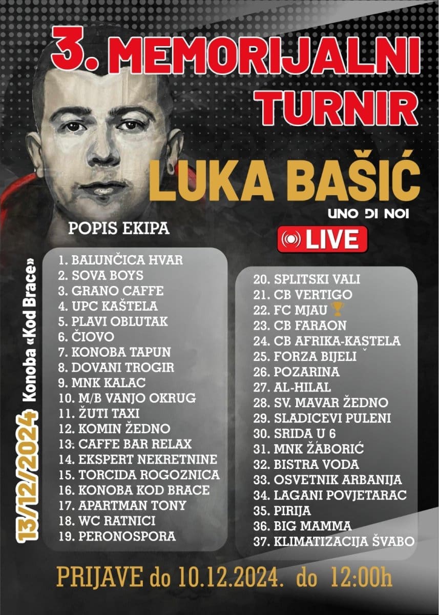 Treći Memorijalni turnir Luka Bašić još jednom će okupiti ljubitelje sporta i prijatelje pokojnog Luke u znak sjećanja na njegovu iznimnu osobnost i utjecaj na zajednicu.