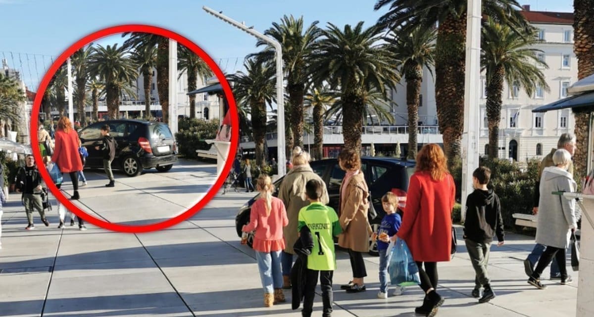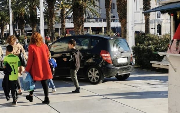 Nije nam poznato je li vozač ovog automobila zalutao na Rivu gdje je već desetljećima zabranjen promet automobilima i ostalim prometalima. Nekako smo skeptični jer je registarska oznaka na automobilu ST, ali možda se našao kakav turist za volanom Mercedesa pa ga navigacija odvela u krivom smjeru, kako se to znalo događati ovoga ljeta...