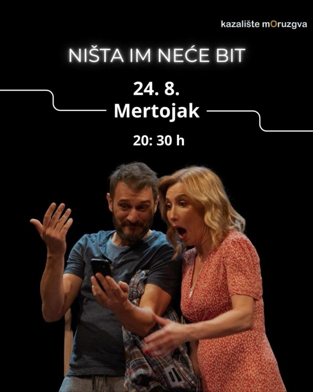 Mertojačko kulturno ljeto nastavlja svoje kazališno putovanje u Mertojačkom amfiteatru - krugu u nedjelju 24. kolovoza u 20:30 sati kada Kazalište "Moruzgva" donosi neodoljivu predstavu "Ništa im neće bit".