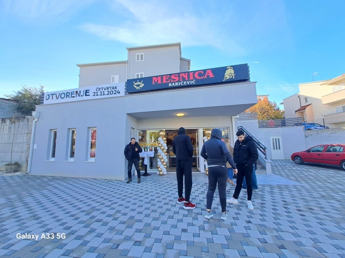 Mesnica Baričević jutros je svečano otvorila svoja vrata na adresi Bl. M. Petković 1, Split. Riječ je o obiteljskom poslu familije Baričević, koja meso uzgaja u srcu Dalmatinske zagore i donose ga izravno do vašeg stola. Dario i njegova supruga, uz sina koji se školuje za mesara, hrabro su zakoračili u svoj prvi poduzetnički pothvat. Po kvaliteti mesa i entuzijazmu sigurni smo da ovo neće biti njihova jedina poslovnica. Zapamtite to prezime – Baričević.