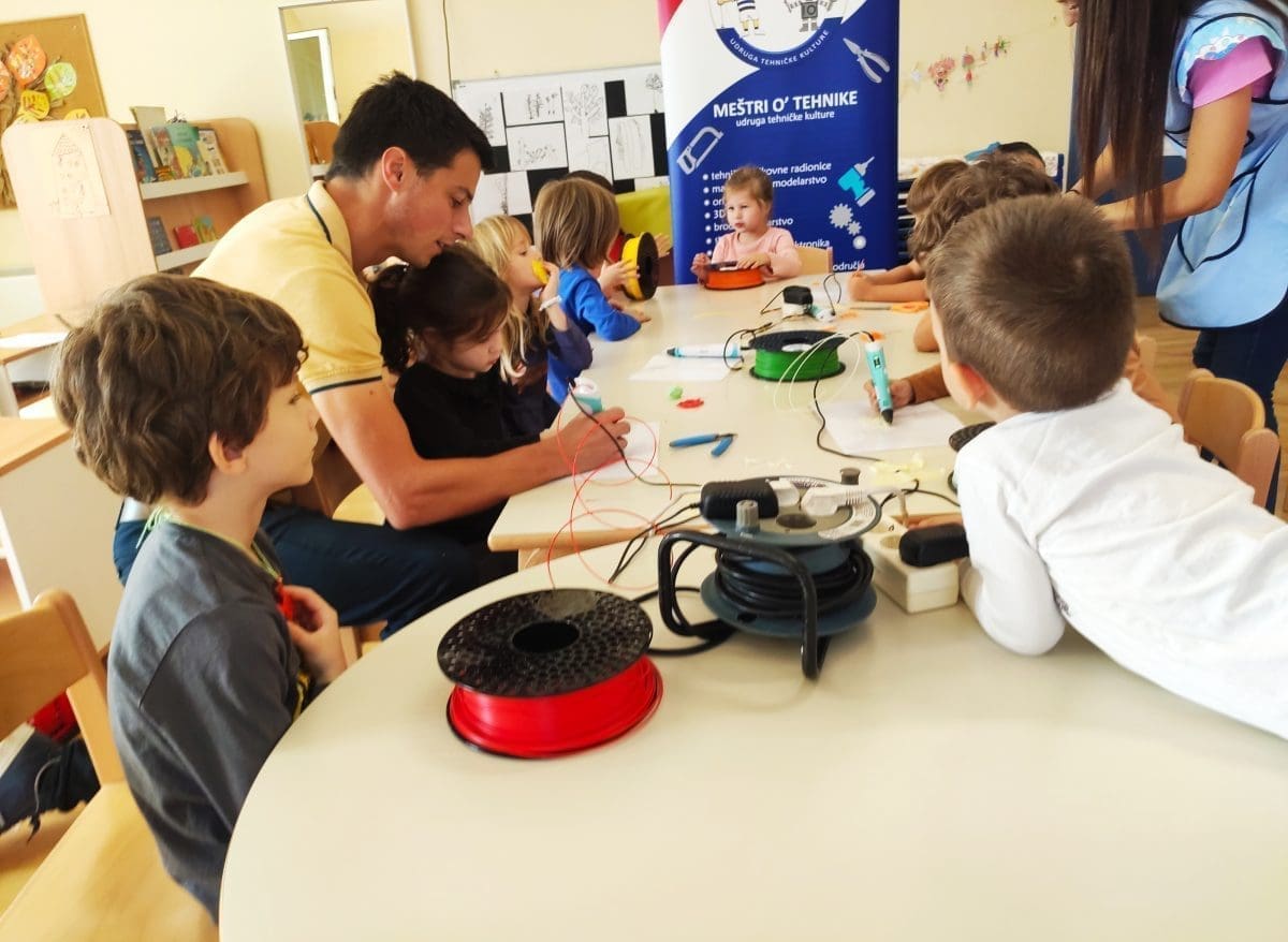 Danas je održana tehnička radionica crtanja 3D olovkama u DV Ružmarin u Splitu koju je održala Udruga tehničke kulture "Meštri o' tehnike" u suradnji s navedenim dječjim vrtićem.