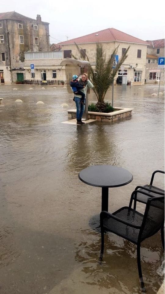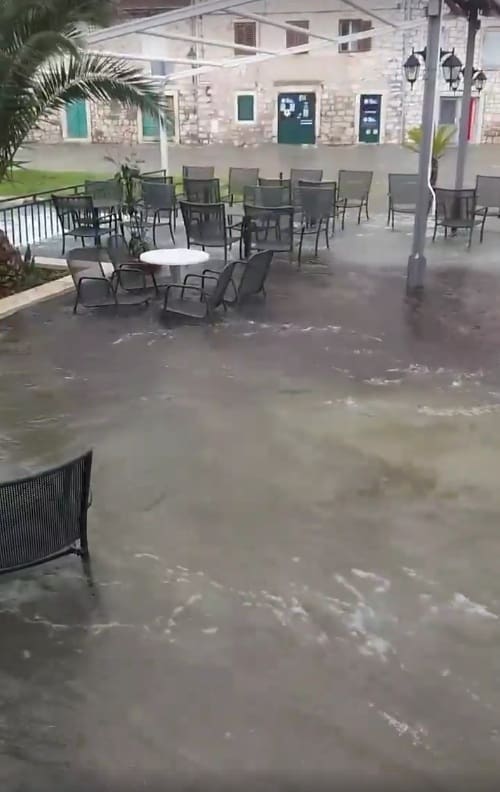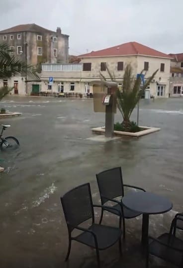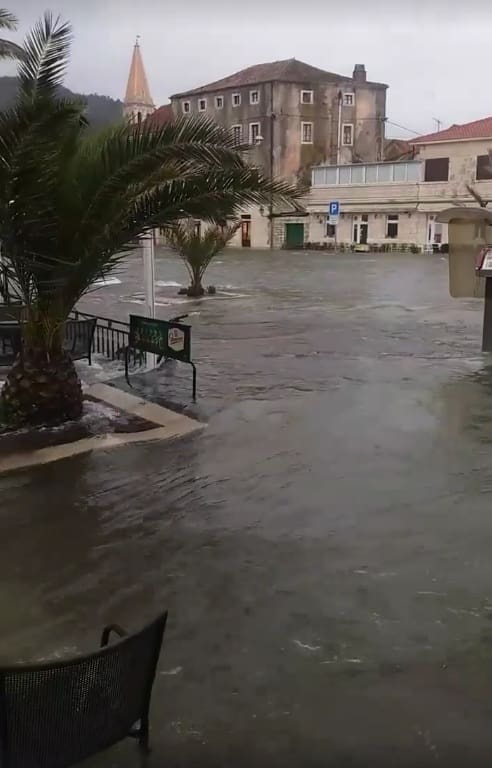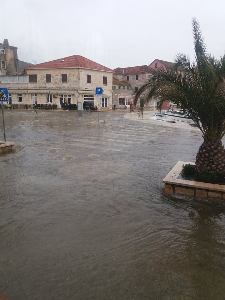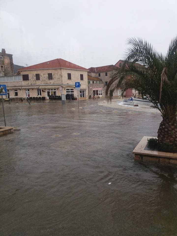 Izražena plima u subotu poslijepodne pogodila je dijelove otoke Hvara, najgore je bilo u Starom Gradu. Oko 16 sati more se naglo diglo za više od pola metra, a onda se isto tako naglo počelo povlačiti. Pojavu ovako izražene plime možemo povezati s naglim promjenama u tlaku zraka, ali i prostranim poljem niskog tlaka zraka čiji se centar danas preko sjeverne Italije premještao dalje na istok, prema kopnu. U takvoj sinoptičkoj situaciji, Dalmacija se našla u izraženom jugozapadnom visinskom strujanju, a u samom Jadranu nalazio se i frontalni poremećaj koji je ponegdje donio olujne oblake - kumulonimbuse.