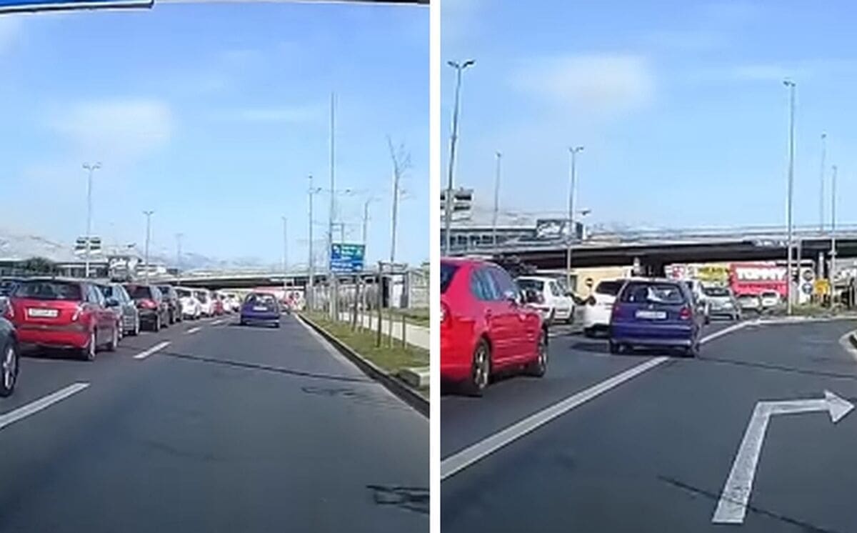 Jedan vozač danas je na vrlo prometnoj dionici u Splitu (onoj na izlazu iz grada) nonšalantno "prevario" ostale sudionike te ih je zaobišao i prestrojio se u prometnu traku prije svih ostalih koji su strpljivo čekali u velikoj koloni.