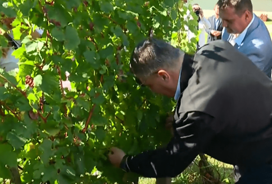 Tijekom berbe predsjednik se nezgodno porezao po prstu, pa je morao staviti flaster, koji je nosio u nastavku druženja i tradicionalnog objeda s diplomatima.