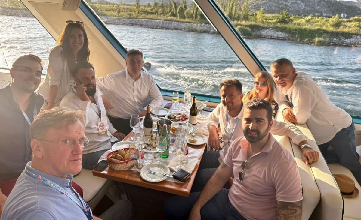 Davor Matijević na Facebooku se pohvalio fotografijom s broda na kojoj sjedi za stolom s Mišom Krstičevićem, Sabinom Glasovac, predsjednikom Milanovićem i ostatkom ekipe iz SDP-a.