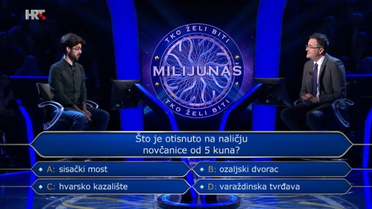 No kada je čuo pitanje za dvostruko viši iznos istom je dao do znanja da će i na njega s lakoćom odgovoriti. Na naličju novčanice od 5 kuna varaždinska je tvrđava, ustvrdio je dodavši da je kao mali skupljao novčanice.