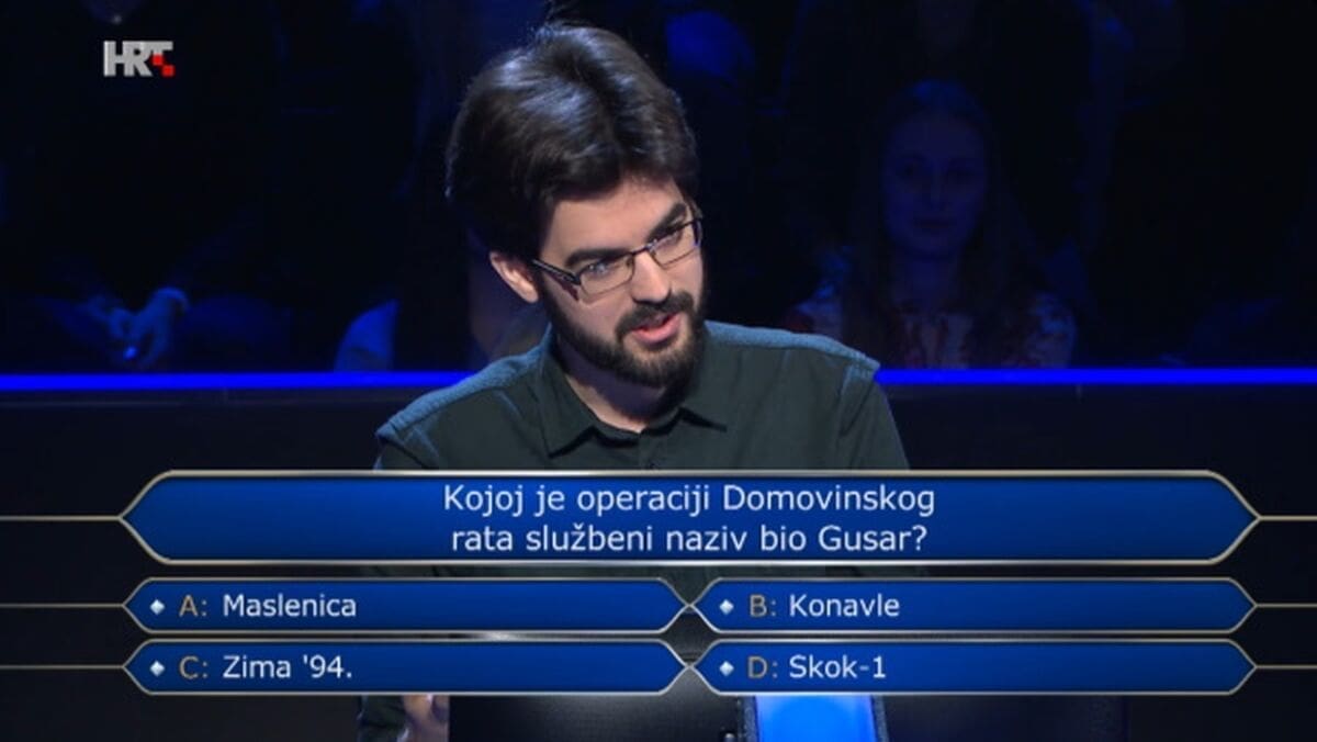 - Meni je stvarno neugodno, ali ja mislim da i ovo znam, rekao je nakon što je Tarik pročitao pitanje za 125.000 kuna! Je li Maslenica, Konavle, Zima '94. ili Skok-1 operacija Domovinskog rata kojoj je službeni naziv bio Gusar, ono je glasilo. Ivan je dodao i kako mu njegovi Zadrani, u čijem je gradu studirao, ne bi oprostili da ne zna kako je riječ o Maslenici.