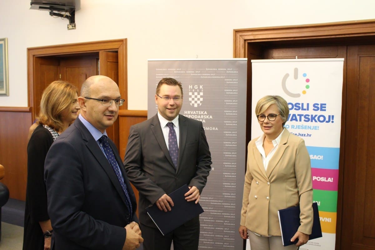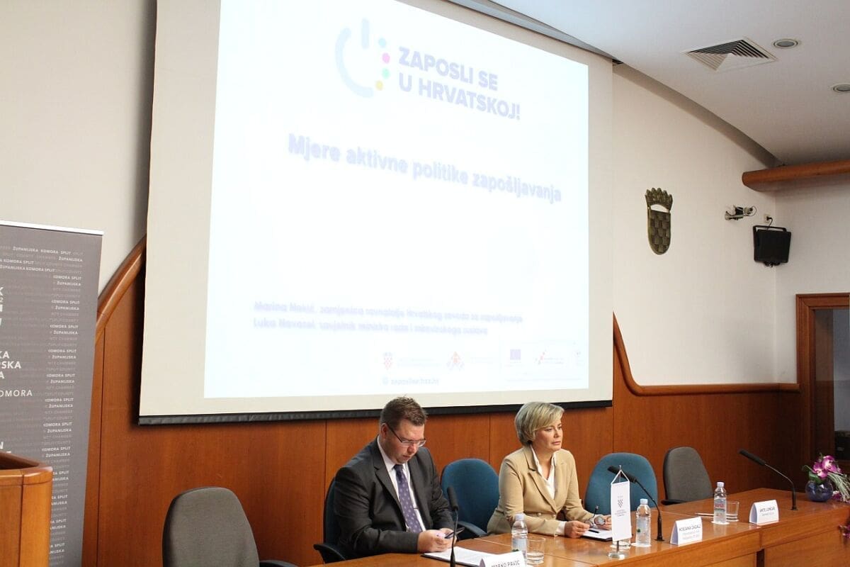 Predstavljanje mogućnosti korištenja mjera aktivne politike zapošljavanja koje provode Ministarstvo rada i mirovinskoga sustava i Hrvatski zavod za zapošljavanje, u suradnji s Hrvatskom gospodarskom komorom održano je danas, 4. rujna u Županijskoj komori Split.
