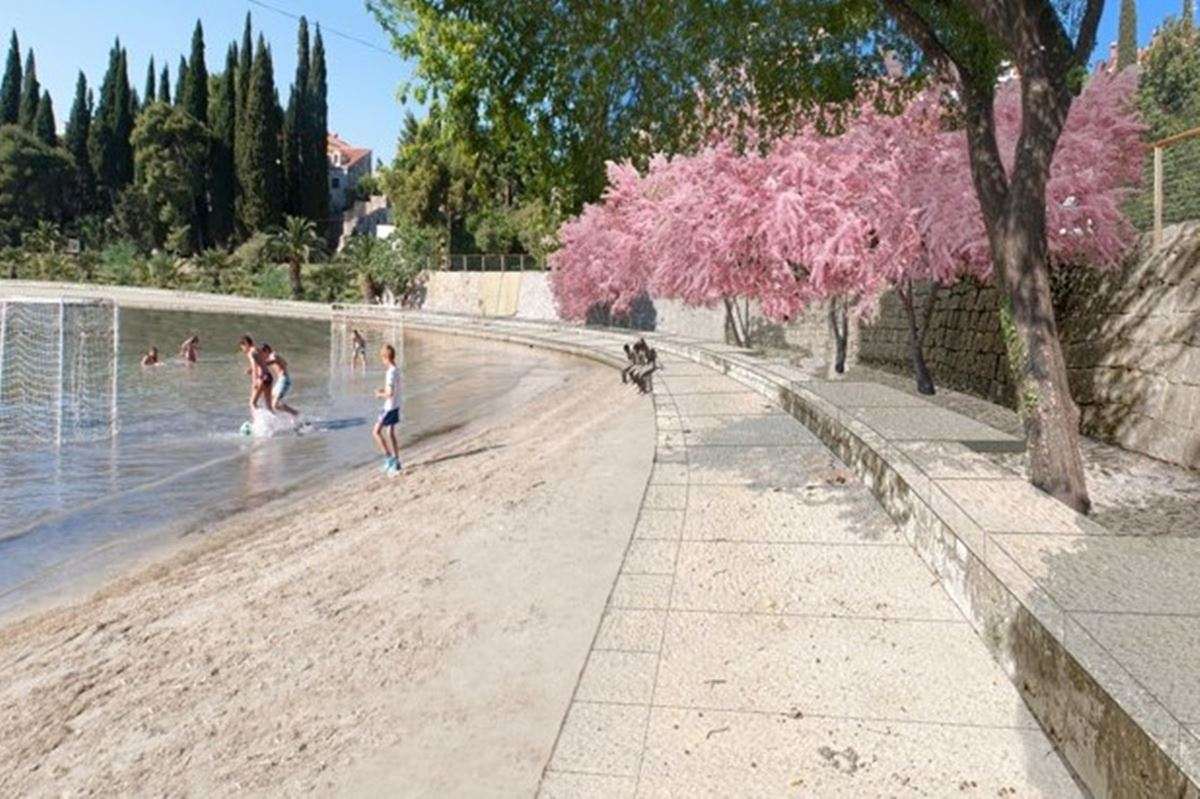 Ideja proširenja kupališne površine predviđa se samo na kopnenoj strani na razini postojećeg zidića koji se zadržava s maksimalnim očuvanjem postojeće vrijedne vegetacija čempresa i borova s potpornim kamenim zidom.