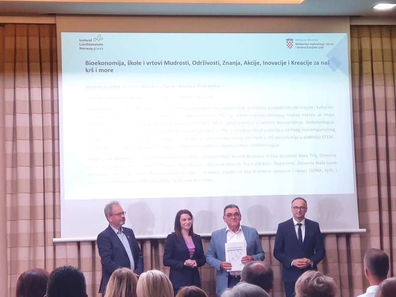 Jedan od ugovora dodijeljen je projektu BioMOZAIK Krš i more kojeg su potpisali ministrica regionalnog razvoja i fondova Europske unije Nataša Tramišak i Ivan Pleić ravnatelj Osnovne škole Ivana Gorana Kovačića, Cista Velika koja je nositelj projekta.