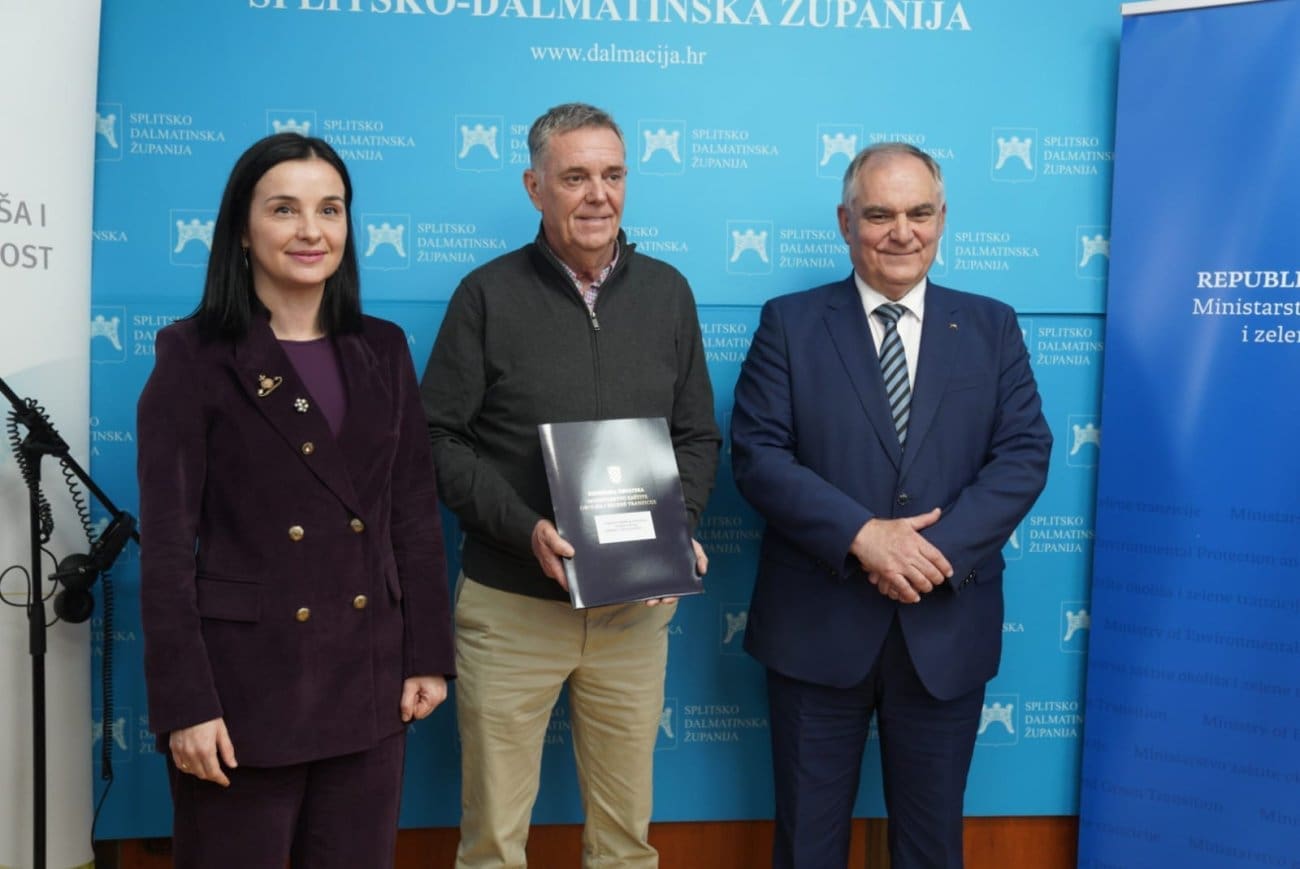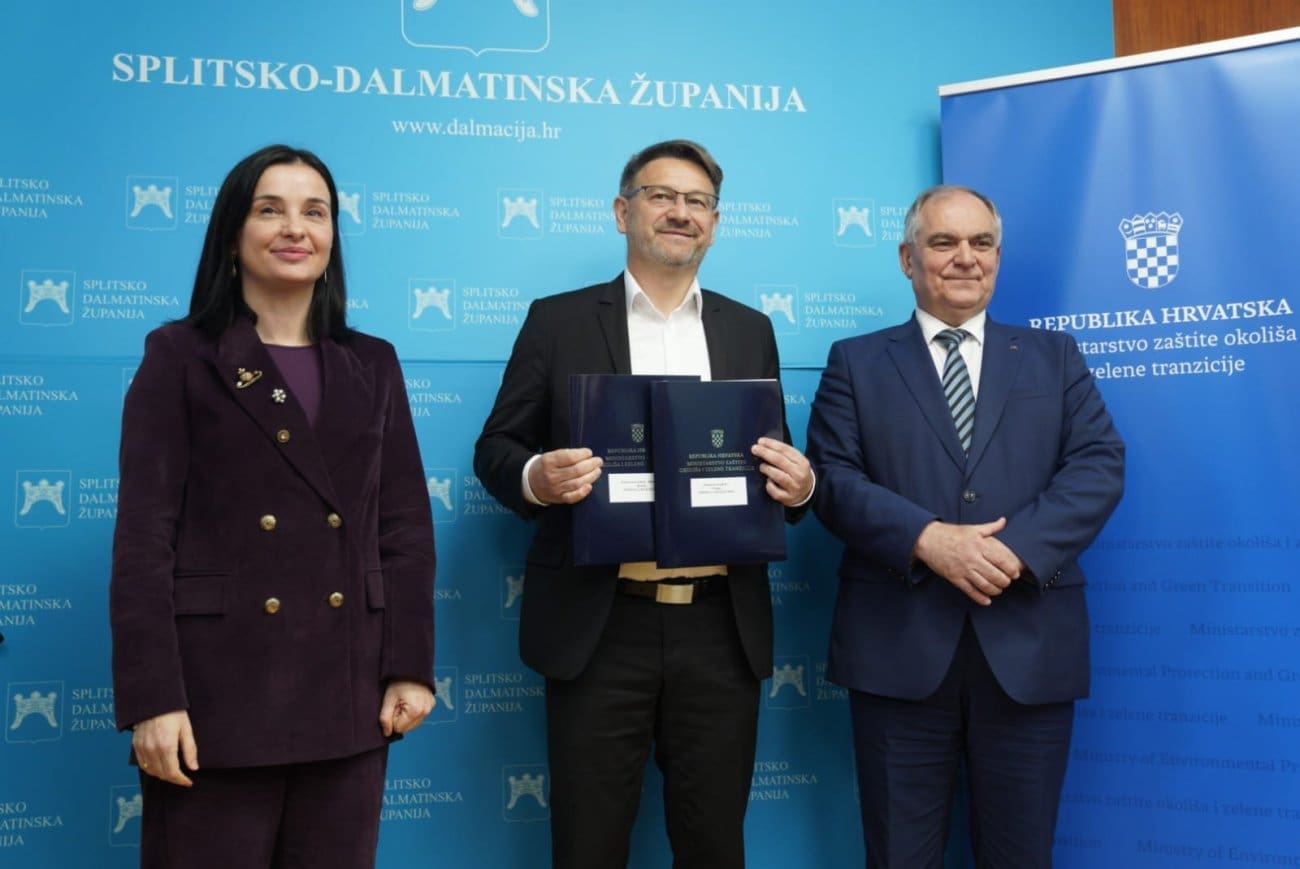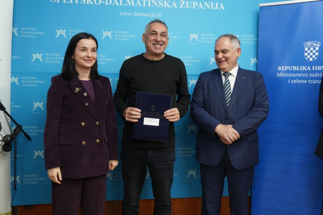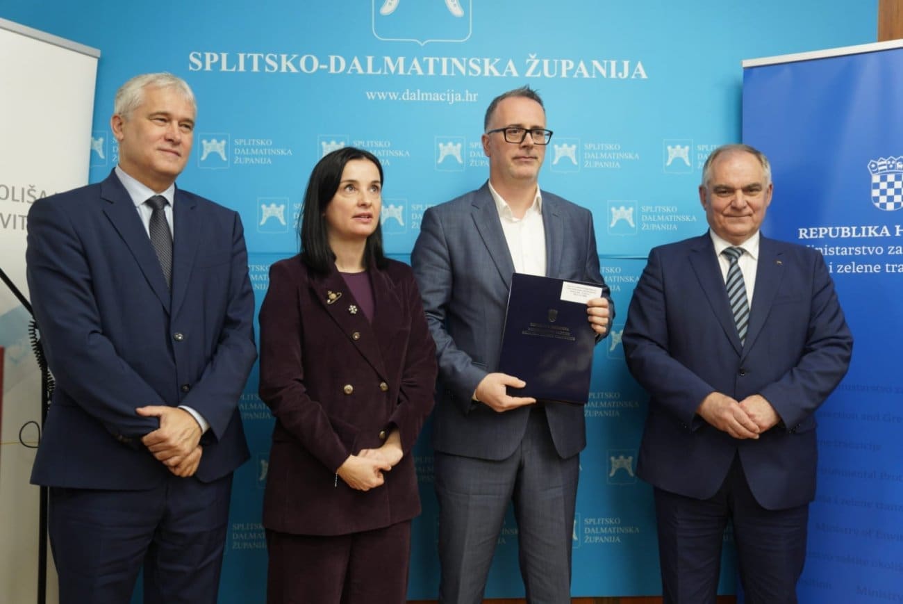 Ministrica zaštite okoliša i zelene tranzicije Marija Vučković, uz župana Blaženka Bobana, prisustvovala je uručenju sedam ugovora kojima se korisnicima dodjeljuju bespovratna sredstva za projekte poboljšanja vodno-komunalne infrastrukture (Vodovod i kanalizacija d.o.o. Split i Vodovod Dubrovnik d.o.o.) te uspostavu reciklažnih dvorišta (gradovi Solin i Hvar te Općina Muć).