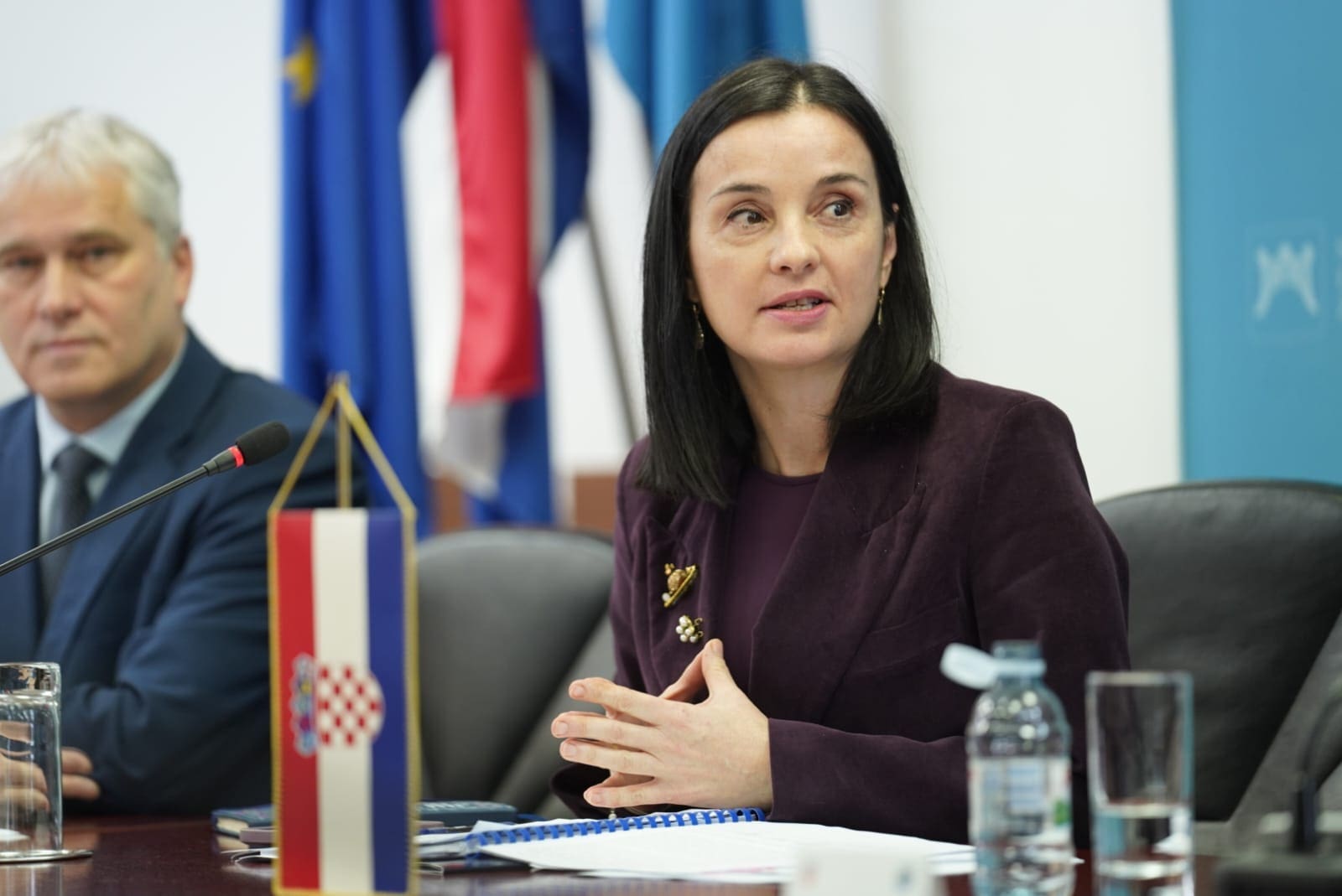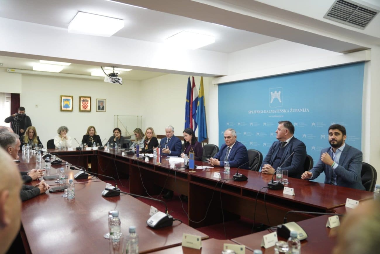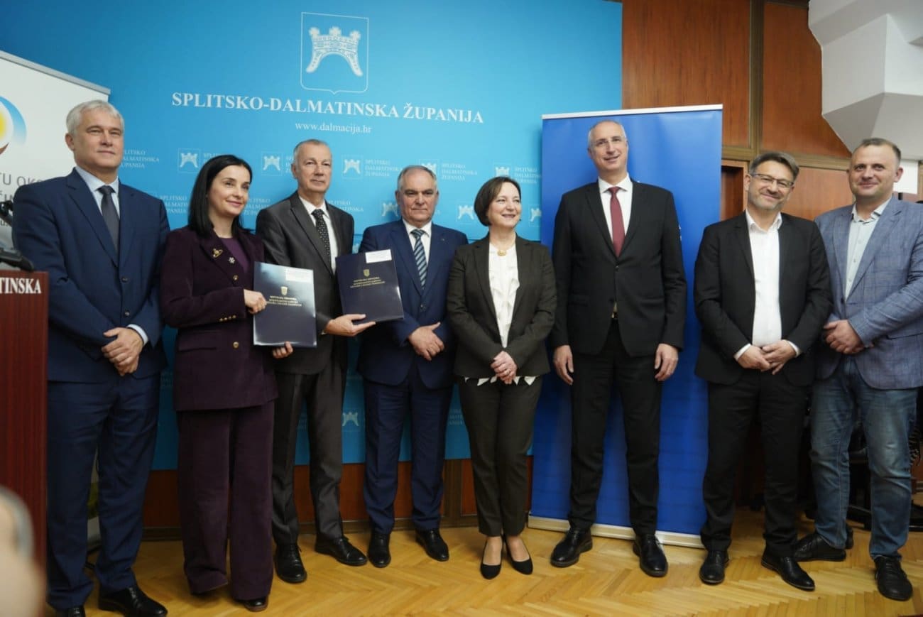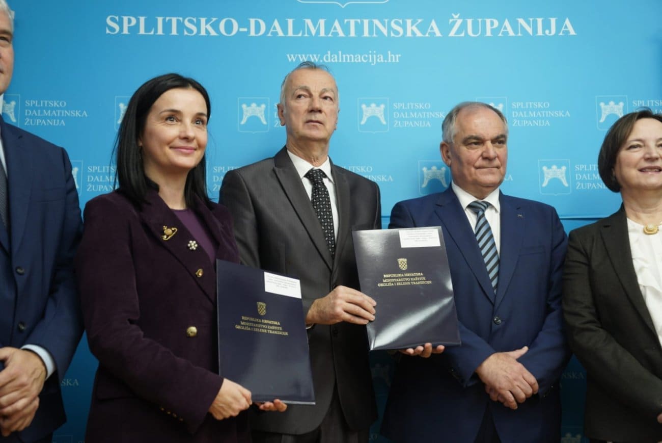 Ministrica zaštite okoliša i zelene tranzicije Marija Vučković, uz župana Blaženka Bobana, prisustvovala je uručenju sedam ugovora kojima se korisnicima dodjeljuju bespovratna sredstva za projekte poboljšanja vodno-komunalne infrastrukture (Vodovod i kanalizacija d.o.o. Split i Vodovod Dubrovnik d.o.o.) te uspostavu reciklažnih dvorišta (gradovi Solin i Hvar te Općina Muć).