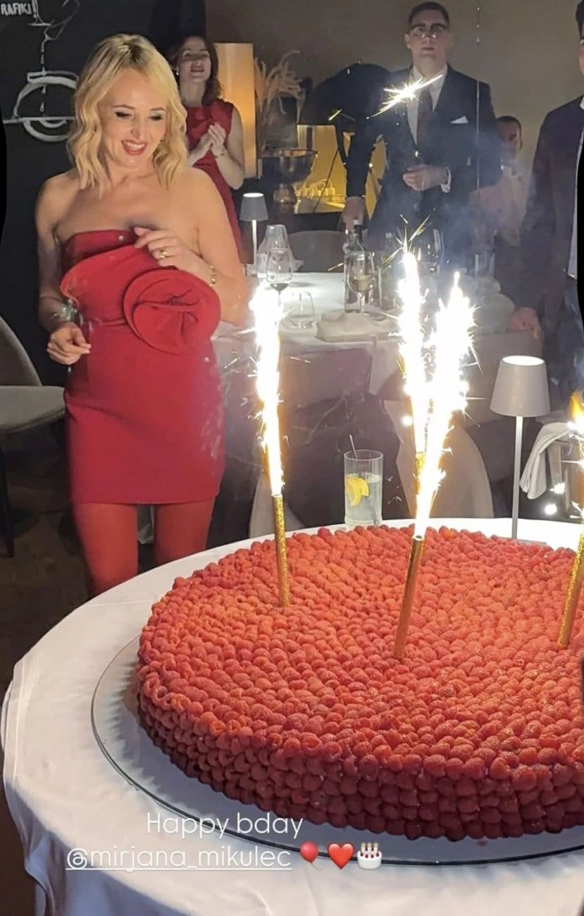 Mirjana Mikulec za ovu je prigodu odabrala upečatljivu crvenu kombinaciju, dok je i sam prostor bio uređen u istom tonu – svečano, elegantno i s dozom glamura koja je zaštitni znak njezina stila. Fotografije i videozapisi otkrivaju večer ispunjenu smijehom, plesom i nazdravljanjem, no iznenađenje koje je uslijedilo posebno je oduševilo uzvanike.