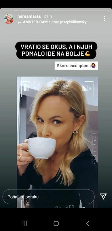 Od simptoma imala je temperaturu, glavobolju, kašalj i umor, a izgubila je miris i okus. Dodala je da je koronu dobila od sina Nike koji se zarazio u školi, ali i da je on imao značajno slabije simptome.