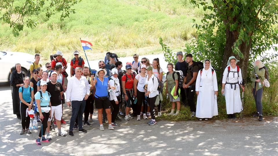 "Brojni vjernici hodočaste u Sinj Čudotvornoj Gospi Sinjskoj. Na njihovom dugom putu dočekao sam hodočasnike iz Rame koji već dva dana pješače do Svetišta Čudotvorne Gospe Sinjske.