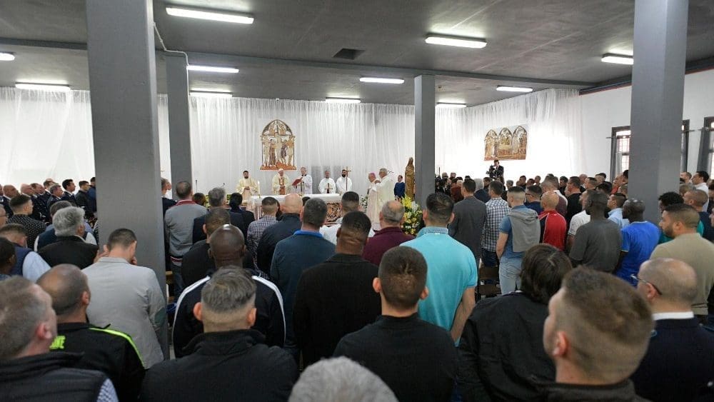 Sveti Otac pozdravio se potom s nekoliko predstavnike civilnog osoblja, policije i zatvorenika, a zatim u kazališnoj dvorani zatvora predsjedao Misom in coena Domini s obredom pranja nogu, kojom započinje Vazmeno trodnevlje.