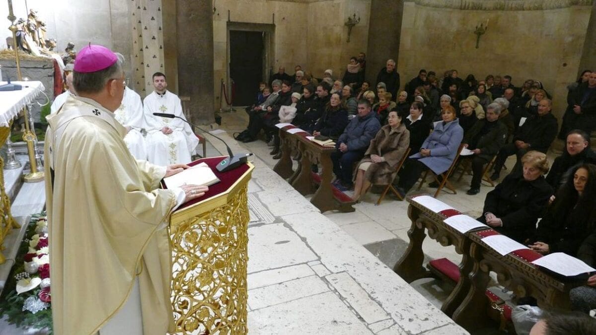 Te Deum – tradicionalnu misu zahvalnicu, na Staru godinu 31. prosinca u katedrali sv. Dujma, predvodio je splitsko-makarski nadbiskup i metropolit mons. Marin Barišić. U koncelebraciji su bili katedralni župnik don Tomislav Ćubelić, don Marko Ćubelić, don Ante Mateljan, don Ivan Marić, don Boris Jozić i don Stipan Šurlin. Tijekom mise oltarski stol je posluživao đakon don Nikola Šakić.