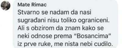 "Stvarno se nadam da naši sugrađani nisu toliko ograničeni. Ali s obzirom da znam kako se neki odnose prema "Bosancima" iz prve ruke, ništa me ne bi čudilo".