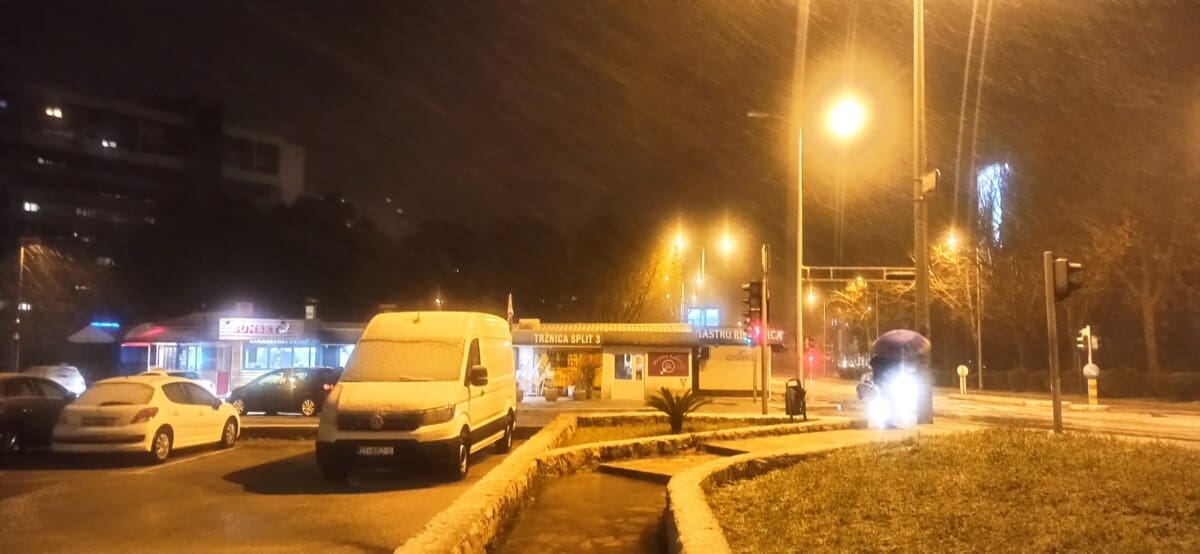 Snijeg je oko 20 sati počeo padati u dijelovima Kaštela, zabijelio se Klis, a viši predjeli Solina također imaju snijeg. Dugopolje u višim predjelima već ima nekoliko centimetara snijega. Cijela Cetinska krajina već ima nekoliko centimetara snijega na tlu.