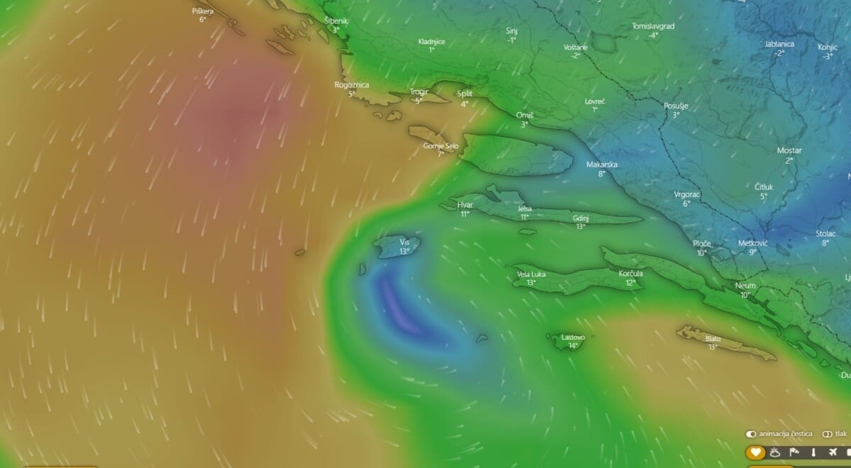 Spomenimo da je u 20 sati najhladnije bilo na Dinari s temperaturom zraka od -10 stupnjeva i osjet hladnoće od ekstremnih -24°C.
