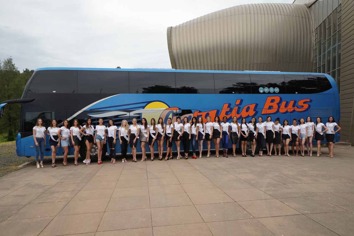 Pod budnim okom predstavnice Croatia Busa Ilijane Jerković, lijepe misice uživaju u vožnji i svim prednostima vrhunskog autobusa – od udobnih sjedala i zatamnjenih stakla do rashladnih uređaja i Wi-Fi-ja, toaleta i frižidera, televizora i prostrane business klase u kojoj uživaju predstavnice iz 40 zemalja: Australije, Belgije, Benina, Bosne i Herzegovine, Brazila, Kameruna, Kolumbije, Hrvatske, Češke, Finske, Njemačke, Gruzije, Gane, Velike Britanije, Guadeloupe, Indije, Indonezije, Italje, Japana, Kazakhstana, Kyrgyzstana, Mongolije, Nepala, Novog Zelanda, Nigerije , Sjevernog Cipra, Paname, Perua, Filipina, Rusije, Srbije, Slovačke, Slovenje, Južne Koreje, Španjolske, Tajvana, Ugande, Ukrajine i Venezuele.