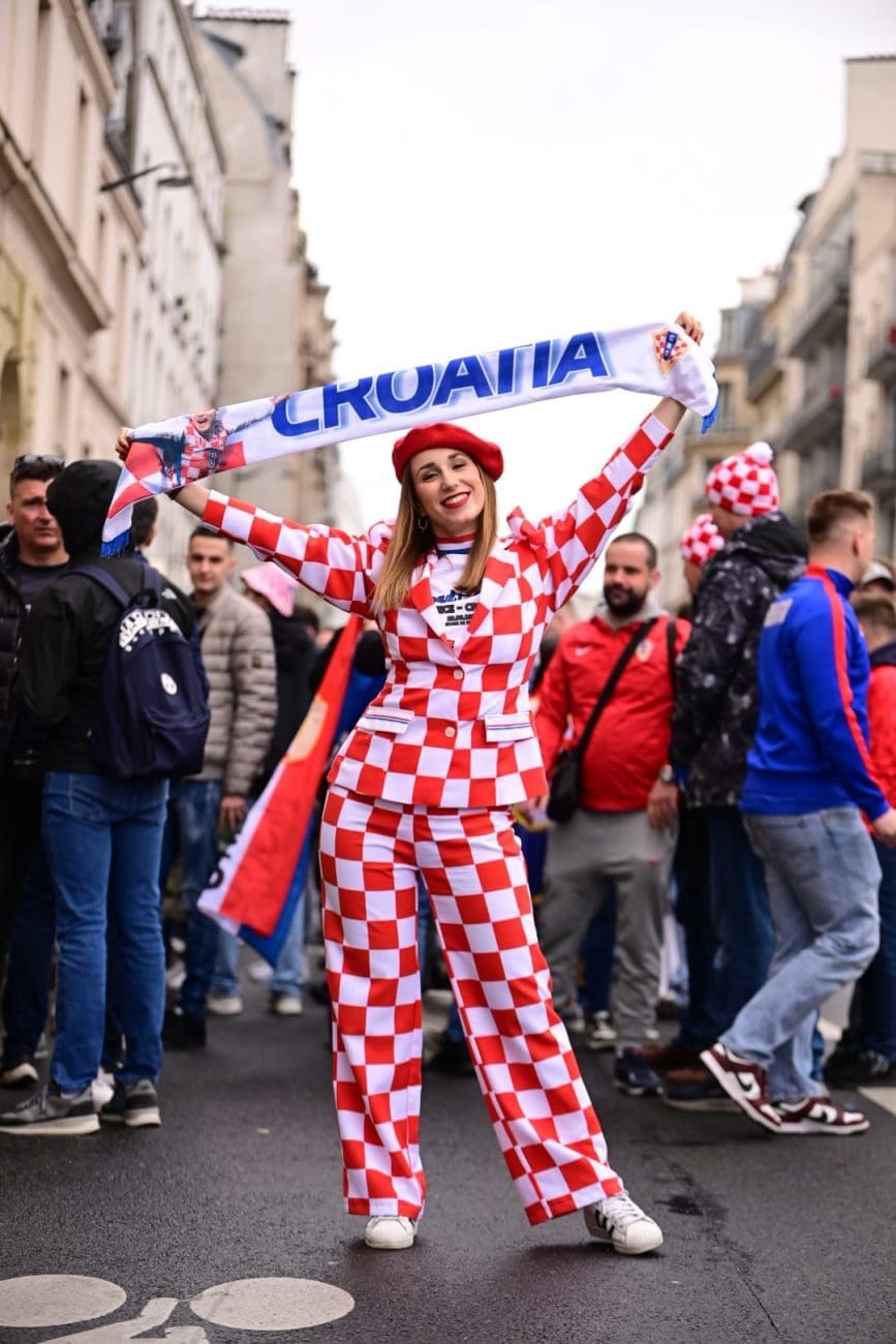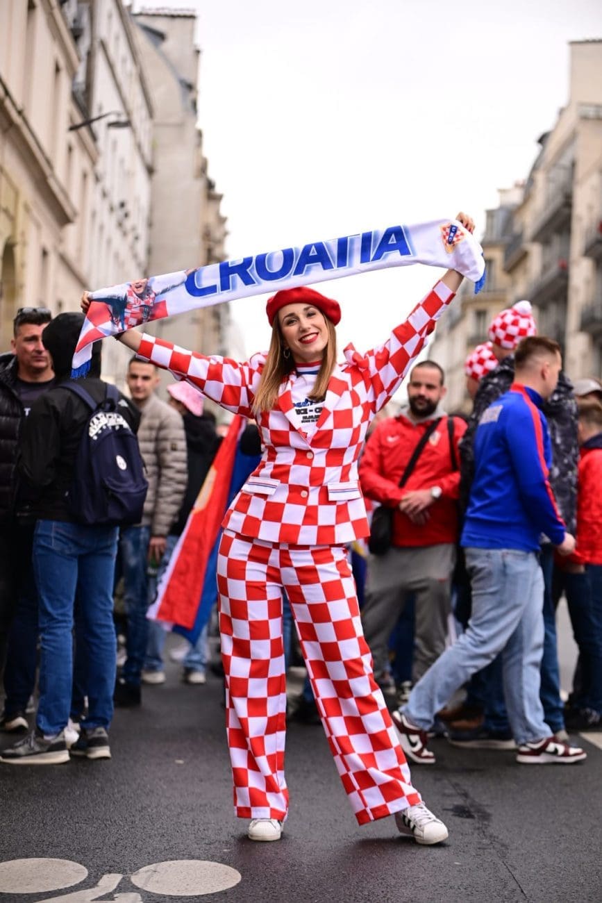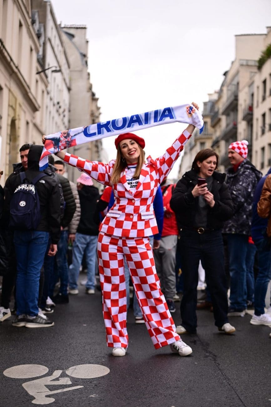 Njezina prisutnost uoči nogometnog spektakla bila je gotovo misteriozna, a njezin osmijeh i energija oduševili su mnoštvo. Ako prepoznajete ovu damu, pomozite nam da joj omogućimo da dođe do svojih slika – možda se prepozna među stotinama drugih lica koja su obojila Pariz u kockice.