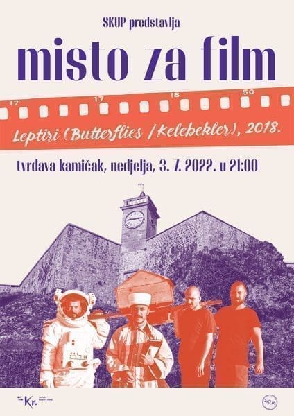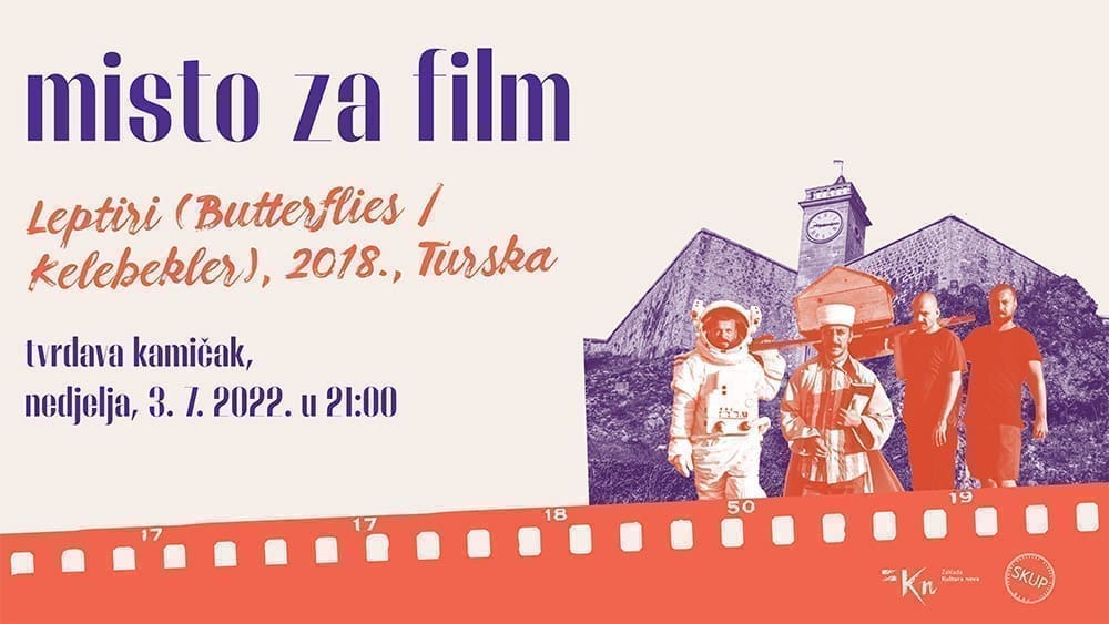 Nakon uspješne prve projekcije iz programa 'Misto za film', udruga Sinjski kulturni urbani pokret (SKUP) najavljuje još jednu filmsku poslasticu - turski film 'Leptiri' (2020). Projekcija će se održati u nedjelju, 3. srpnja 2022., s početkom u 21 sat na tvrđavi Kamičak u Sinju.