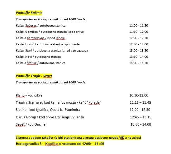 Do tada, VIK organizira alternativnu vodoopskrbu svojim potrošačima putem autocisterni i vodospremnika, prema rasporedu koji je u prilogu te je isti objavljen i na našoj web stranici.