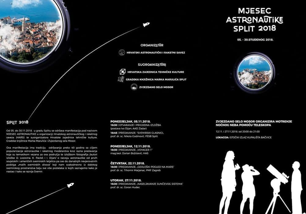 U organizaciji Hrvatskog astronautičkog i raketnog saveza (HARS), u Splitu se u vremenu od 5. do 30. studenog održava Mjesec astronautike. Suorganizatori događanja su Hrvatska zajednica tehničke kutlure, udruga Zvjezdano selo Mosor (ZSM) i Gradska knjižnica Marka Marulića (GKMM).
