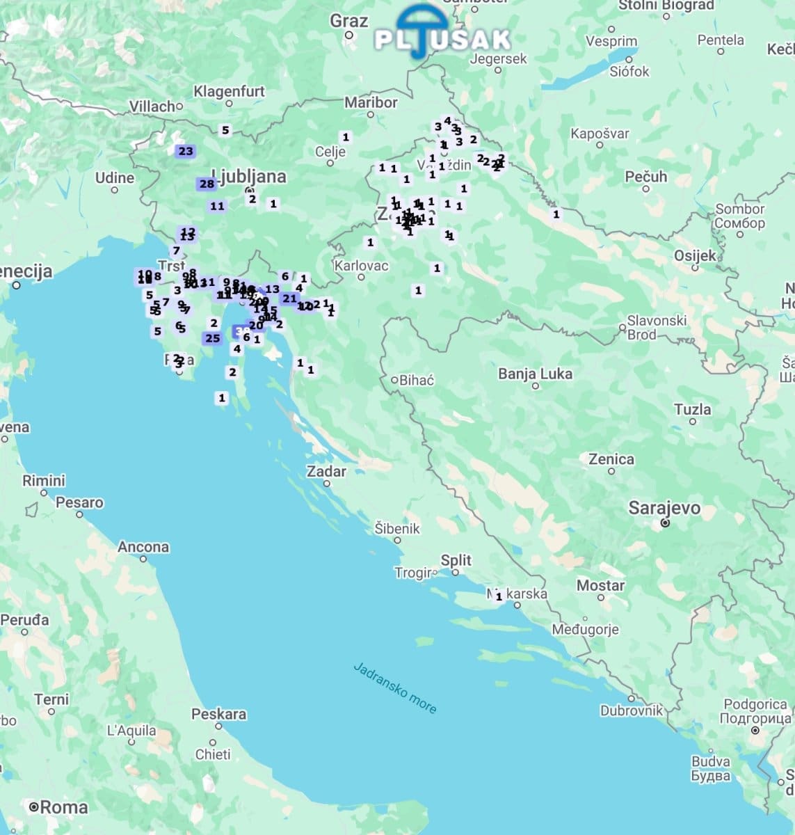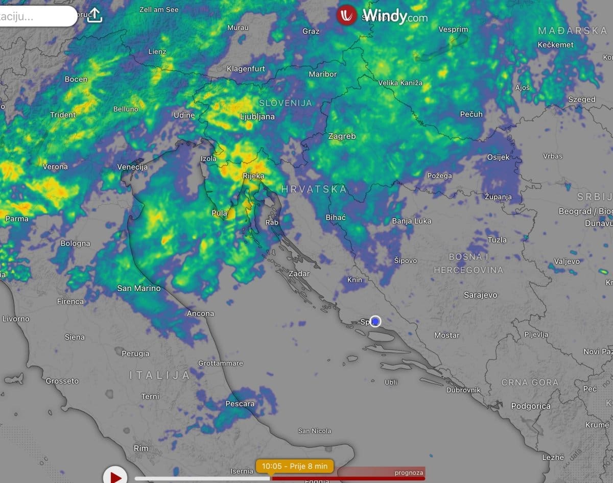 Kako to obično biva s nadolazećim ciklonama sa zapada, naoblačenje i kiša prvo su zahvatili sjeverni Jadran gdje je već do 10 sati mjestimice palo preko 30 litara kiše.