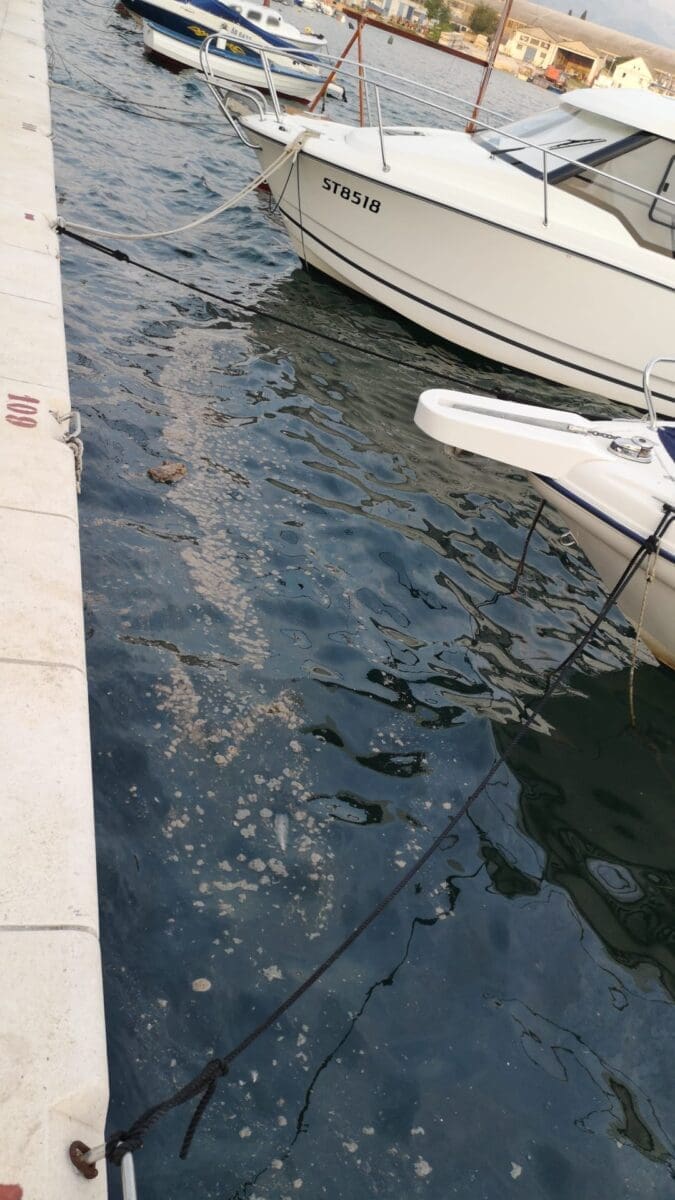 Ovako more izgleda svaki vikend u Vranjicu nakon što se brodovi kod povratka s turističkih tura 'olakšaju'", napisali su te priložili fotogaleriju koja prikazuje stanje onečišćenog mora.