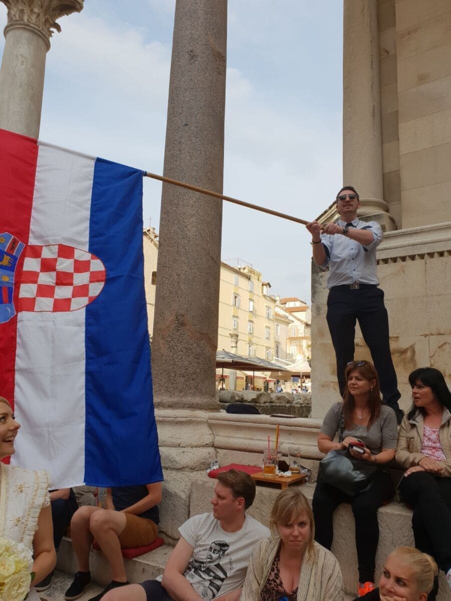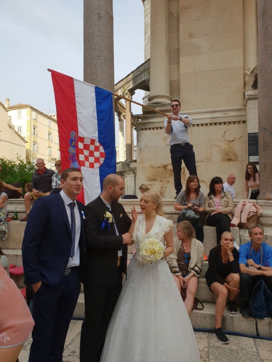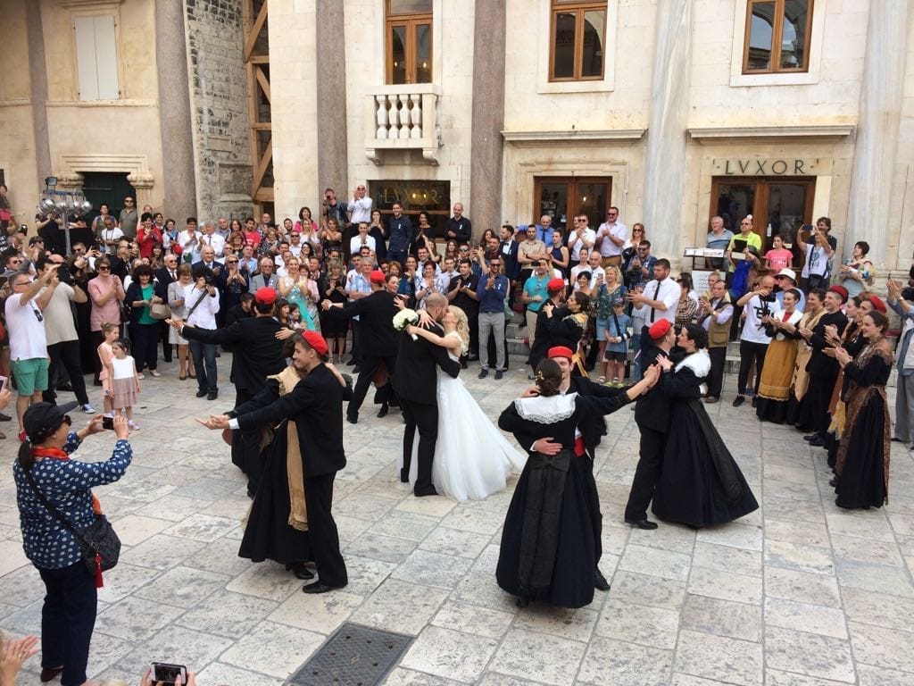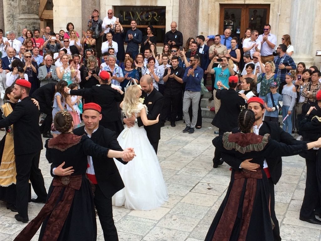 Slavlje su upotpunili članovi KUD-a Filip Dević, koji su na Peristilu s mladencima zaplesali Splitsko kolo.
