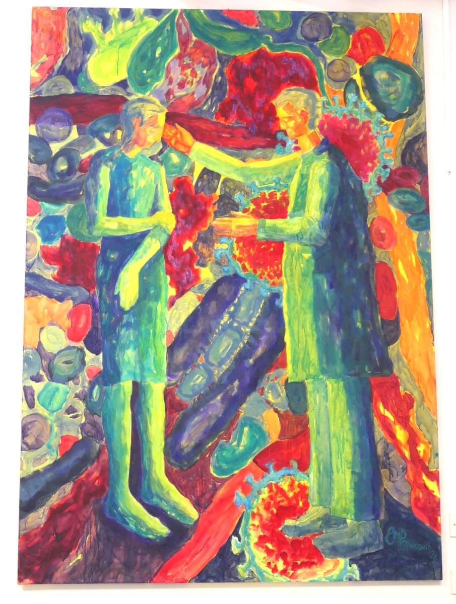 „U ovo blagdansko vrijeme iščekivanja Božića, poželjela sam darovati svoju sliku onima koji nam daruju svoje znanje, vrijeme i brigu – liječnicima Klinike za infektologiju KBC-a Split. Prikaz je to liječnika koji brine o pacijentu, u kompoziciji s virusima, bakterijama i drugim mikroorganizmima. Slika je dobila i vedar naziv koji nosi najljepšu iskrenu želju, a koja je ujedno i poznati dalmatinski pozdrav 'Zdravi bili'. Nadam se da će ovaj dar biti poticaj i drugim umjetnicima da svojim doprinosom, kreativnim i likovnim, uljepšaju bolničke prostore. Neka moja slika, svojim žarkim koloritom, doista svakom poruči 'Zdravi i veseli bili'“, naglasila je umjetnica.