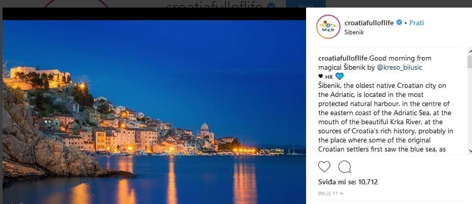 Šibenik je lijep u svakom dijelu godine, a u to se možete uvjeriti u atraktivnoj fotogaleriji mladog šibenskog fotografa Krešimira Bilušića. Neke od ovih fotografija objavljene su na popularnoj Instagram stranici "Croatia full of life" gdje su dobile na tisuće lajkova i pozitivnih kometara iz Hrvatske i svijeta.