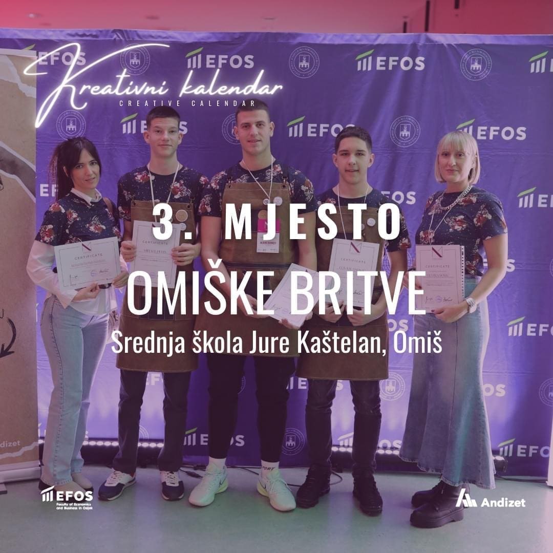 „Malo je reći da smo svi zadovoljni. Dočekali su nas kao prave zvijezde. Milenijsko natjecanje iz kreativnih industrija ozbiljan je međunarodni događaj koji je od ove godine i pod pokroviteljstvom Ministarstva znanosti i obrazovanja. Ekonomski fakultet u Osijeku organizira natjecanje na visokom nivou i bila nam je čast biti sudionicima natjecanja. Na natjecanju smo u konkurenciji od gotovo 100 škola osvojili 3. mjesto. Naš je uspjeh tim veći jer smo bili jedina trogodišnja škola u konkurenciji s gimnazijama i ostalim četverogodišnjim školama. Natjecanje je,kao što smo već napomenuli, međunarodno i natječemo se u 4 kategorije: Put svile, Vodik, Mitologija i Glagoljica, ali nagrade se dodjeljuju za najbolje idejno rješenje bez obzira u kojoj ste kategoriji. Dakle, treće mjesto je zbilja veliki uspjeh“.