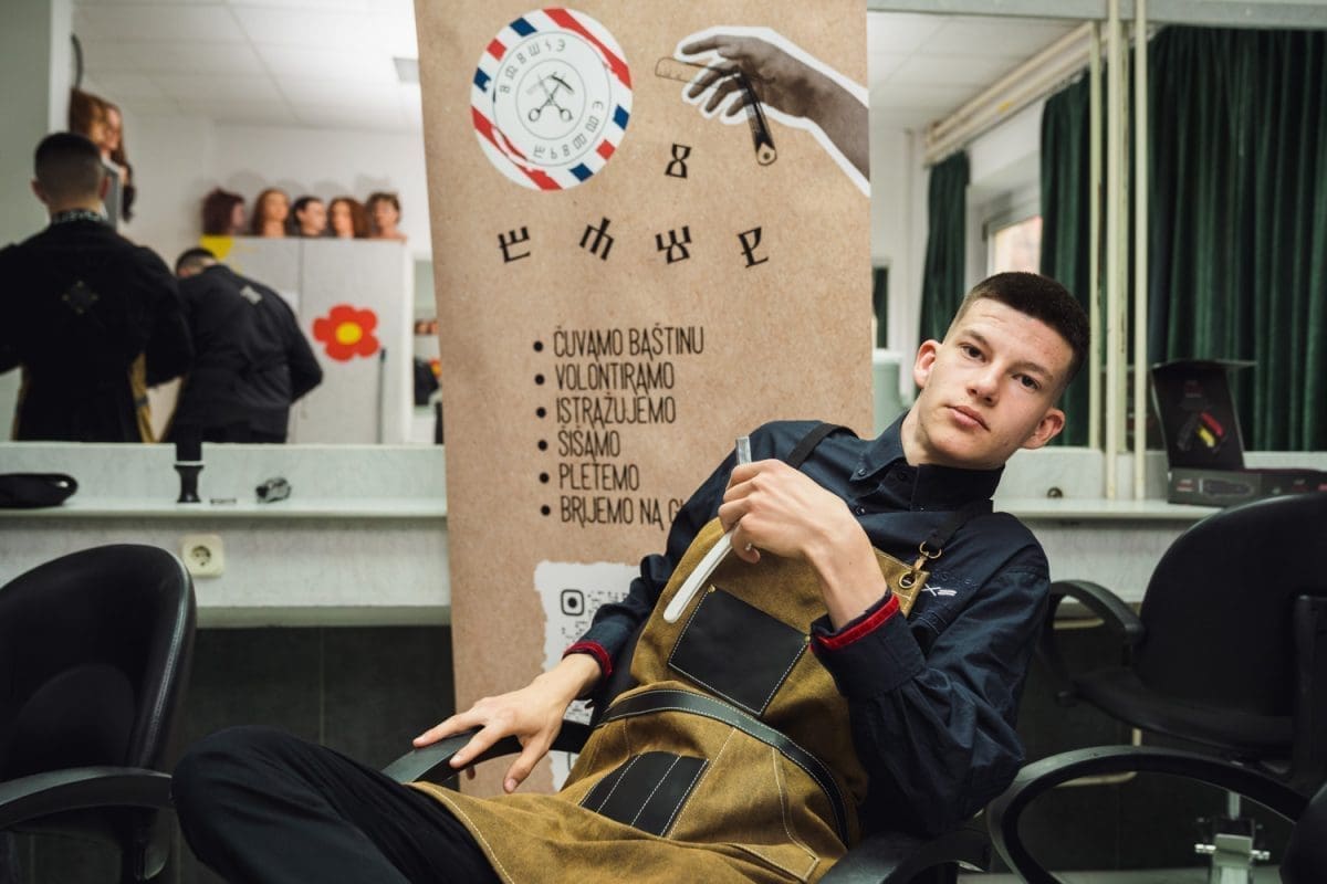 „Ideju nam je predložila naša razrednica Elvira Sorić. Ona je lani pripremala cure iz hotelijersko – turističkog usmjerenja na 4. Milenijskom natjecanju koje su osvojile 3. mjesto sa svojim idejnim rješenje. Odmah po povratku najavila nam je putovanje u Osijek te zadala hrpu zadataka. Cijelu godinu smo istraživali glagoljicu, povijest brijačnica u svijetu i u Dalmaciji, a kad smo dovoljno duboko ušli u temu idejno rješenje se nametnulo samo od sebe: Brijat ćemo na glagoljicu!“, kazao nam je simpatični Albin.