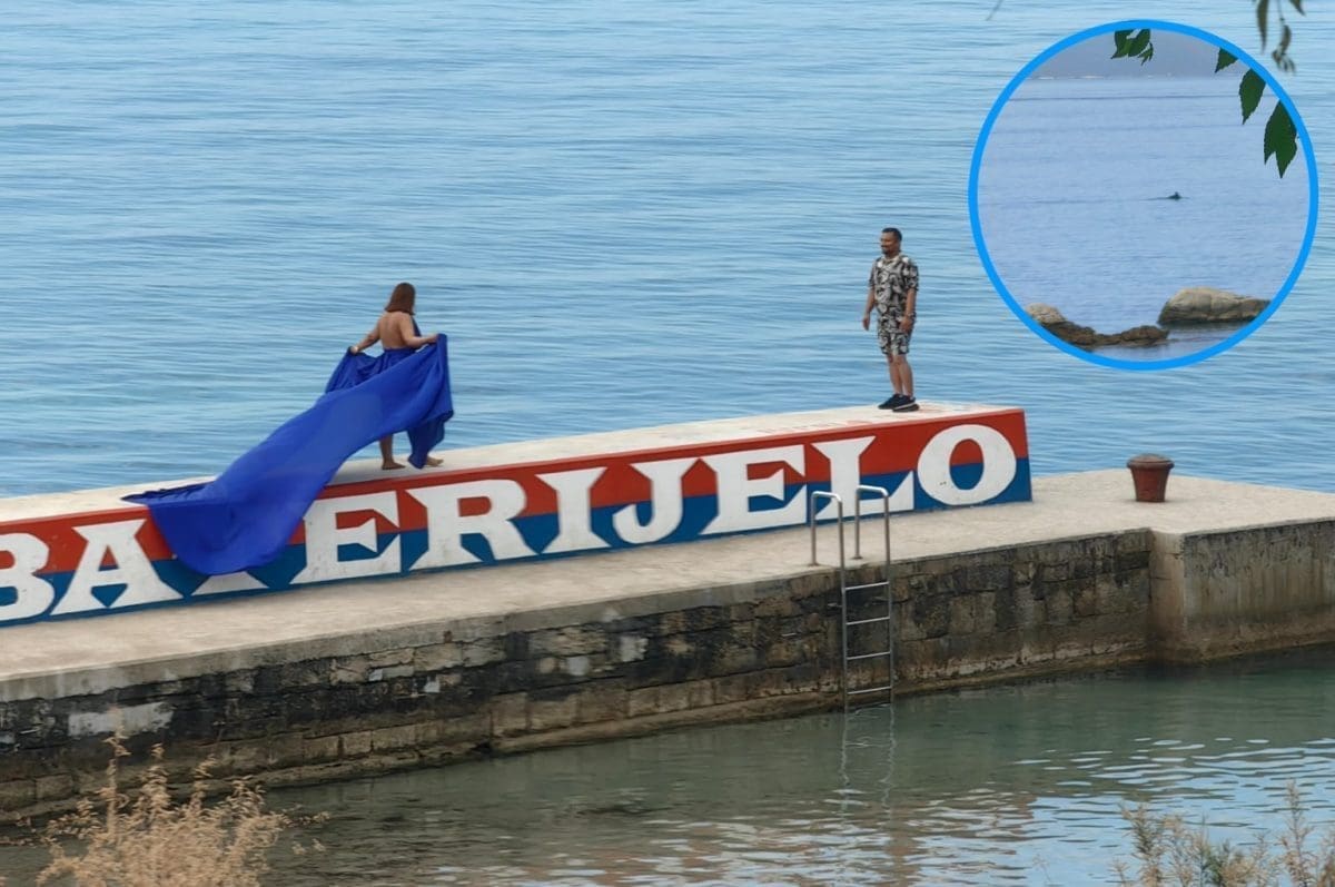 A dok se dupin zabavljao u moru, mladi je par imao svoj "foto session" na obali.