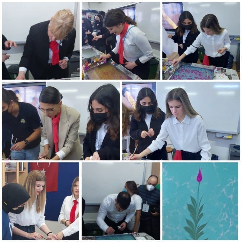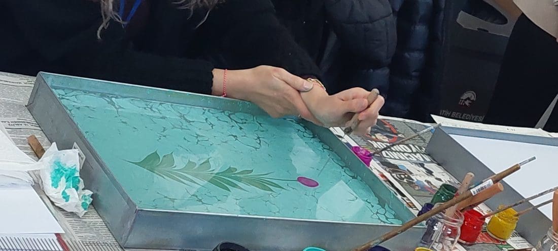 Domaćini su organizirali nekoliko edukativnih radionica na kojima su prezentirali kulturna dobra s liste turske nematerijalne baštine. Ebru ili 'paper marbling' je drevna, orijentalna turska umjetnost ukrašavanja vode. To je umjetnost stvaranja šarenih uzoraka prskanjem i četkanjem boja na površini masne vode, a zatim se taj uzorak transformira na papir. U početku se ova umjetnost koristila u uvezivanju knjiga, dekoriranju papira i predmeta, bordura na slikama i levhama. Danas je ova tehnika postala zaseban dio islamske umjetnosti. Od pribora za crtanje koriste se četkice od konjske dlake s drškama od stabla ruže, a mogu se koristi i češljevi, kapaljke i igle, koje se koriste za razmazivanje i miješanje boja. Imali smo prilike izraditi vlastitu ebru sliku te ponijeti kući trajnu uspomenu na posjet Istanbulu.