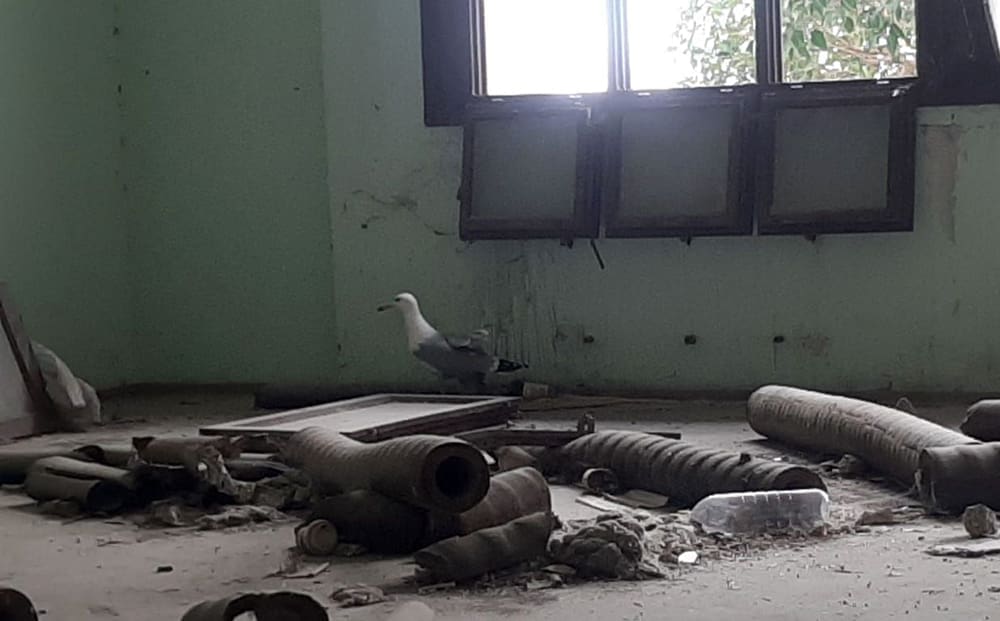 U jednoj od razrušenih zgrada vojarne u koje rijetko tko zalazi, početkom tjedna sklonio se galeb slomljenog krila. Sudbina je htjela da baš tog ponedjeljka prošetamo hodnicima ovih zgrada ne bismo li napravili kakvu zanimljivu fotogaleriju. Čim smo ga vidjeli, a znajući da ptica koja ne leti nema nikakvih šansi za preživljavanje, krenuli smo tražiti način da mu pomognemo.