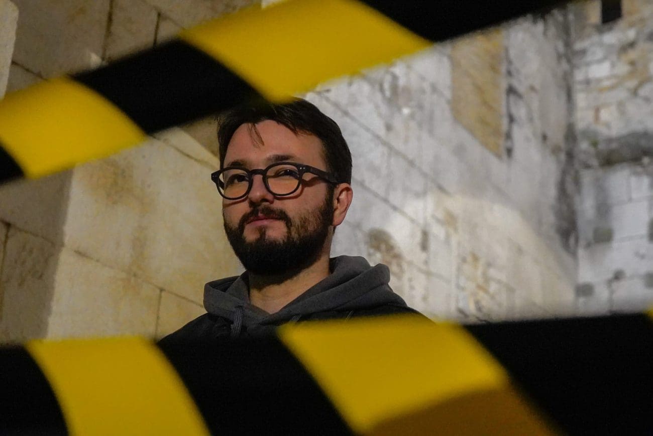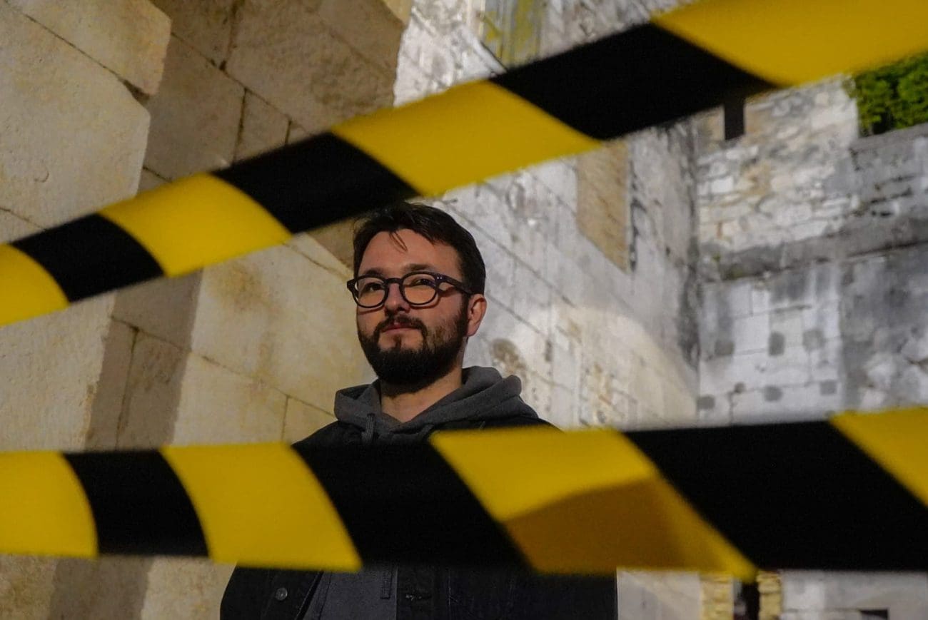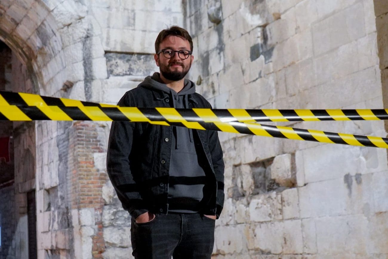 Fotografiranje nakon intervjua Matije Rubića za našu rubriku „Iza kulisa“ bilo je jedno od neobičnijih novinarskih iskustava. Mjesto radnje – Zlatna vrata. Vrijeme radnje – kasni noćni sati. U Splitu još pokoji turist, neki od njih dobrano pod gasom. Fotografkinja Mia Milković s improviziranom crime scene trakom koja zbilja ide uz Rubićeve romane – prvijenac „Obojena svjetlost“ u kojemu njegov junak Roko Miletić istražuje slučaj djevojke ubijene na splitskoj plaži, a potom i „Zlatna vrata“, nastavak serijala o mladom istražitelju koji je na prekrasnom dijelu Dioklecijanove palače zatekao zavezane dječje tenisice i jeziv krvavi natpis nakon kojeg je sigurno samo jedno – Split više nije siguran grad, a mete su oni najranjiviji – djeca.