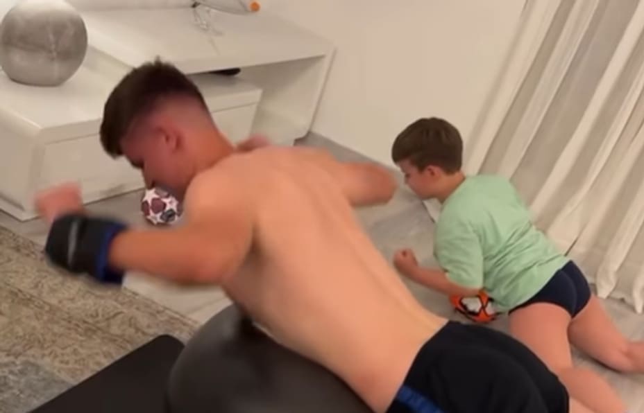 Naime, snimila je Bornu u trenutku treninga, a video je snimljen u njihovom obiteljskom stanu. Zanimljivo prizor je da uz Bornu trenira i njegov mlađi brat Nardo.