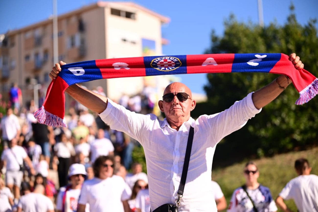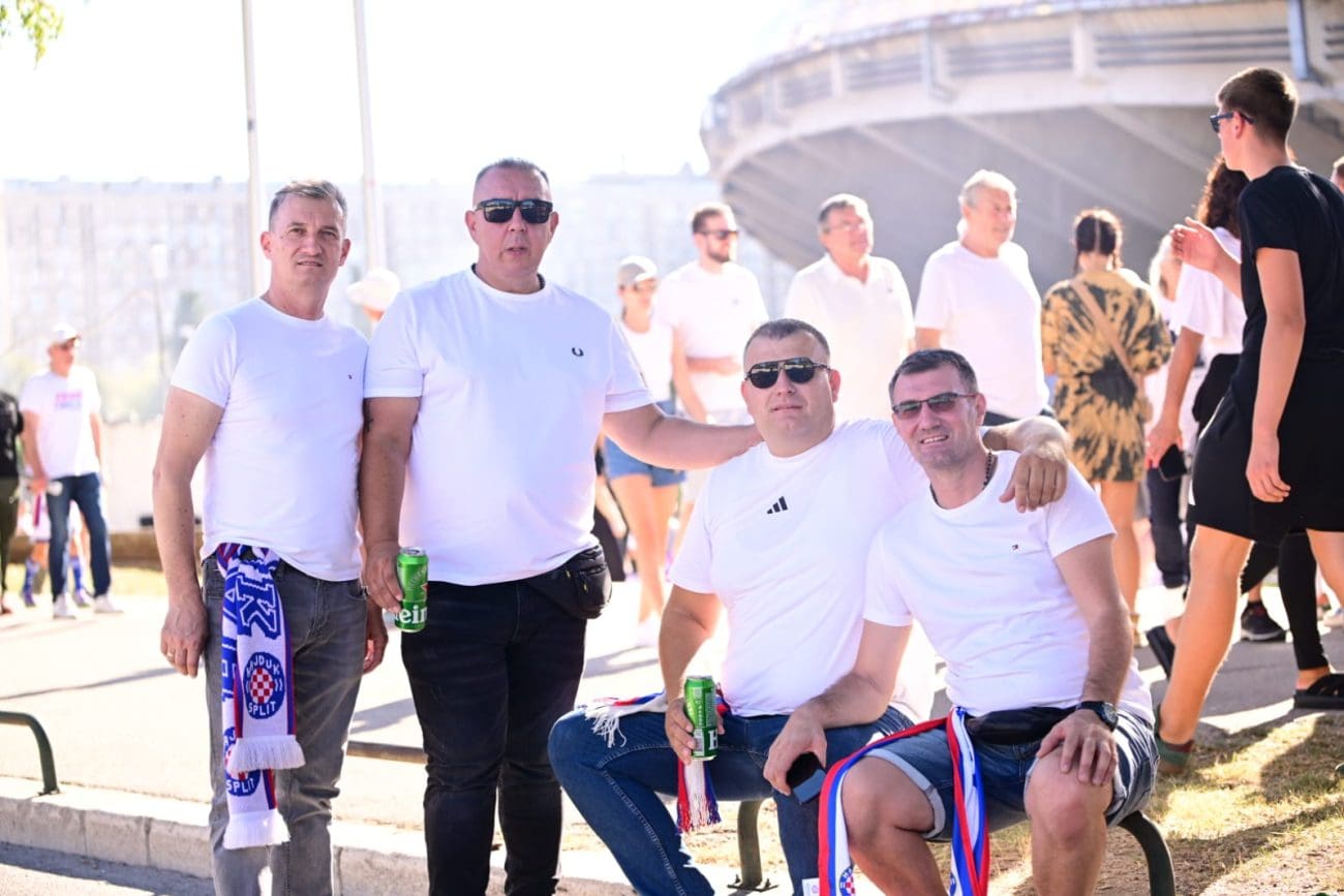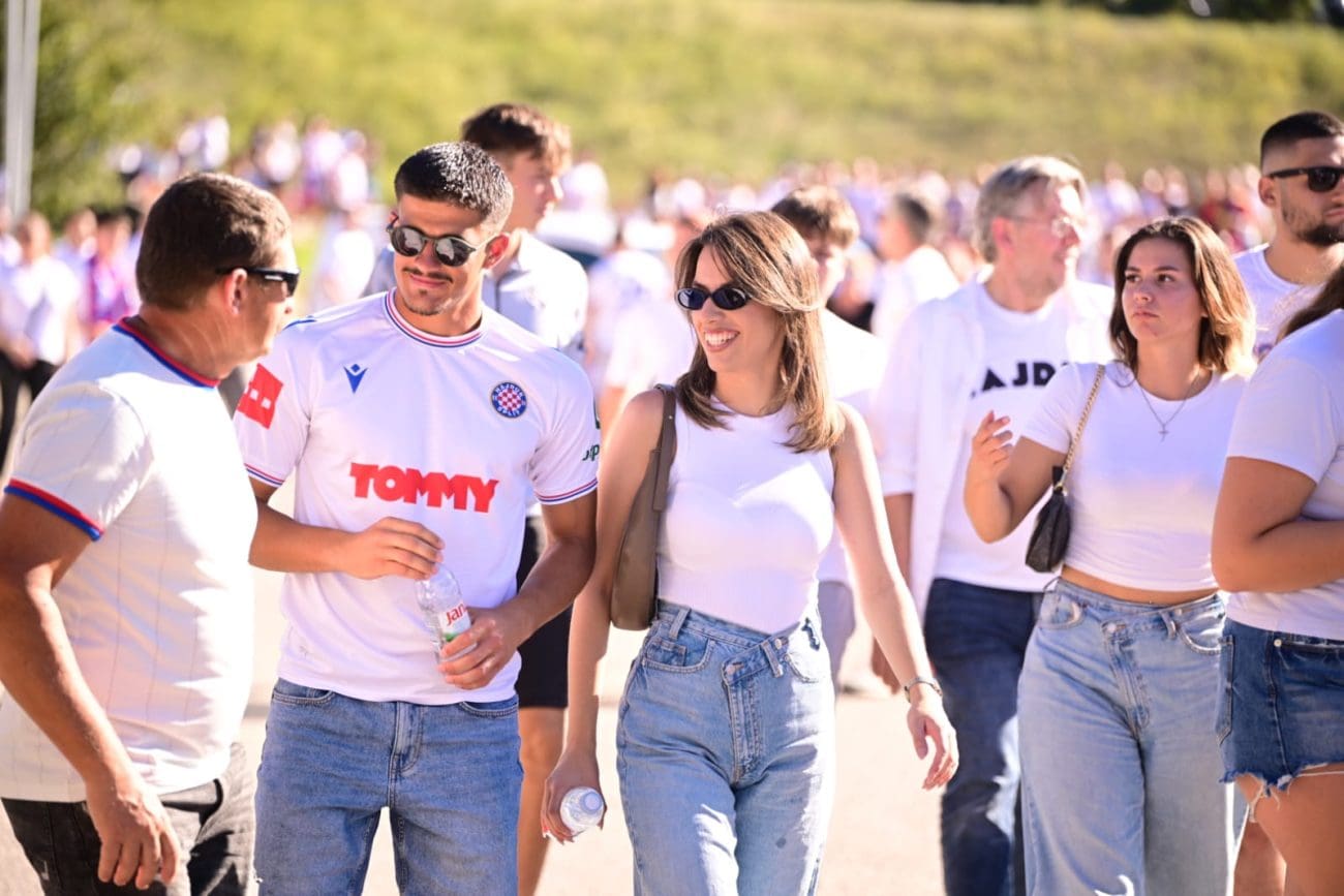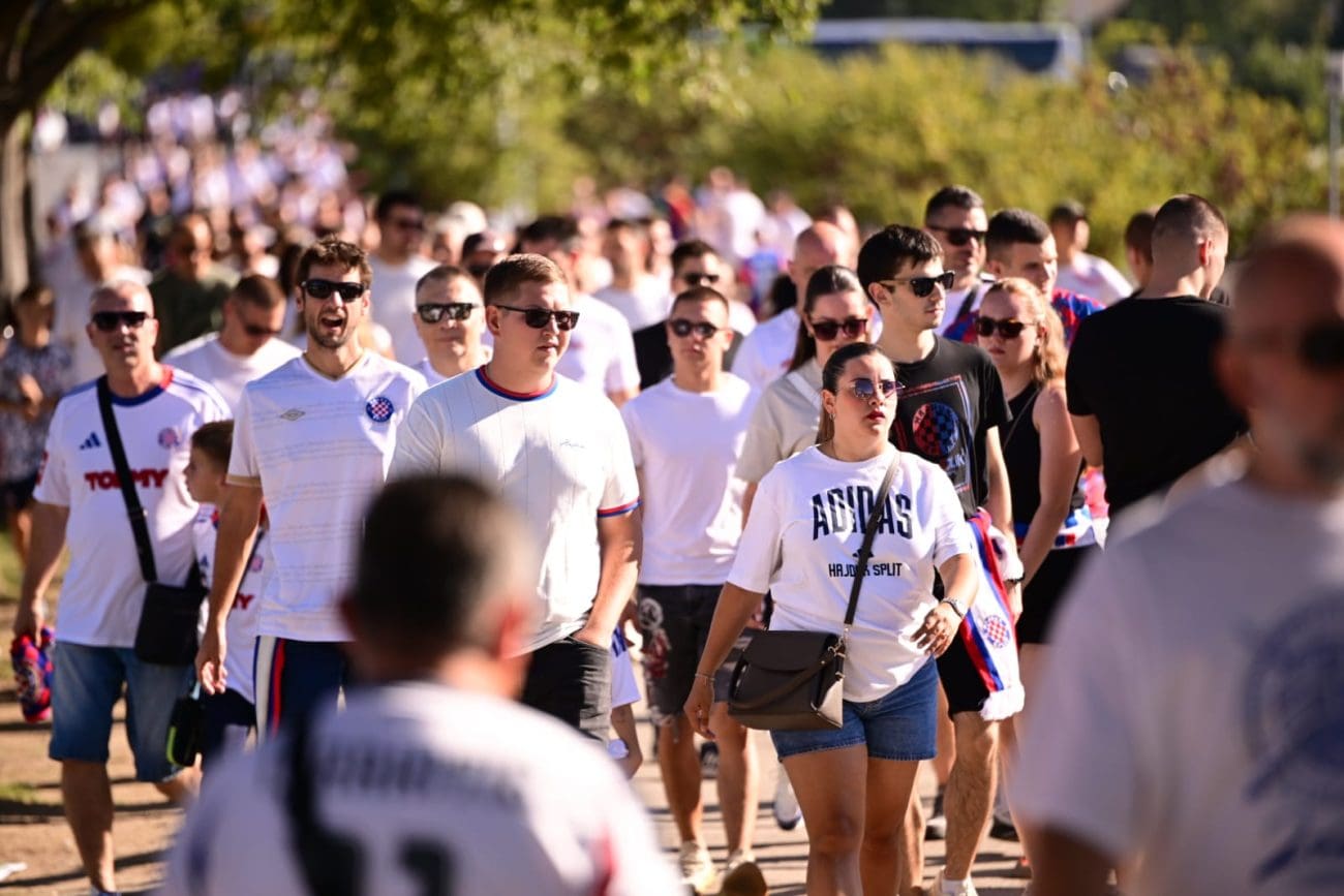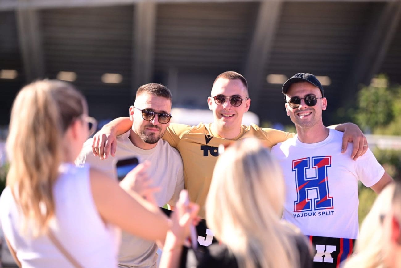 Na tribine i oko stadiona slijeva se šarolika masa – mlado, staro, obitelji s djecom, skupine prijatelja i veterani navijačkih dana. Svi zajedno ujedinjeni u jednoj boji i jednoj želji: bodriti Hajduk do pobjede.